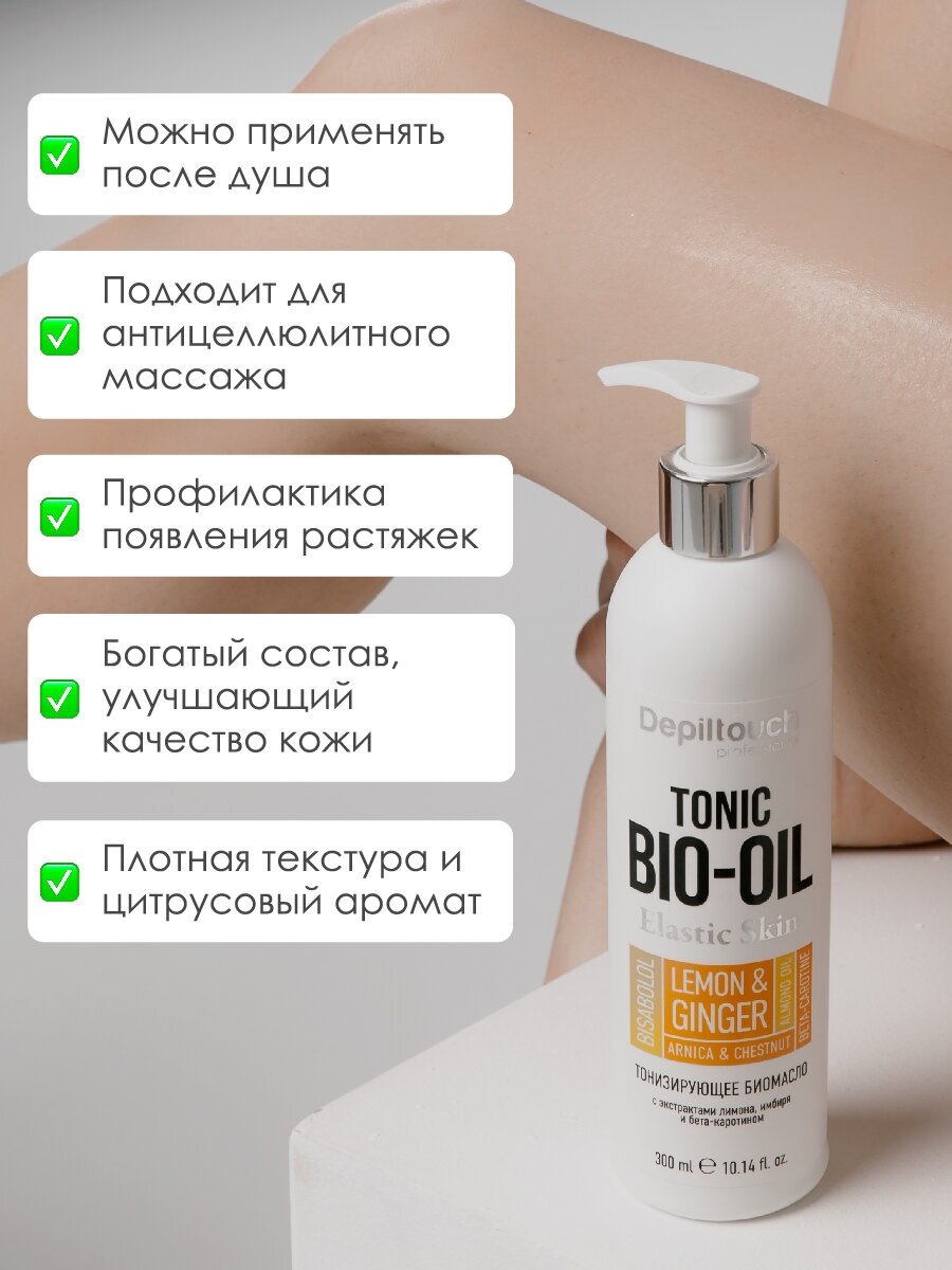 Питательный тоник-биомасло насыщен активными растительными экстрактами и витаминами, хорошо увлажняет кожу. Бисаболол имеет противовоспалительное действие, способствует восстановлению эластичности кожи, придает ей шелковистость. Миндальное масло препятствует шелушению. Витамин Е является авторитетным антиоксидантом. Экстракты горной арники и каштана - природные венотоники, стимулируют микроциркуляцию крови, имеют противоотечное действие, укрепляют стенки сосудов. Экстракты лимона и имбиря оказывают лимфодренажный эффект, мощно тонизируют кожу и повышают ее упругость. Биомасло не закупоривает поры, может использоваться как для очистки кожи от остатков воска после депиляции, так и для антицеллюлитного или скульптурирующего массажа. Рекомендовано для всех типов кожи. Для повышения эффективности процедуры депиляции на всех этапах рекомендуется использовать средства Depiltouch Professional.
