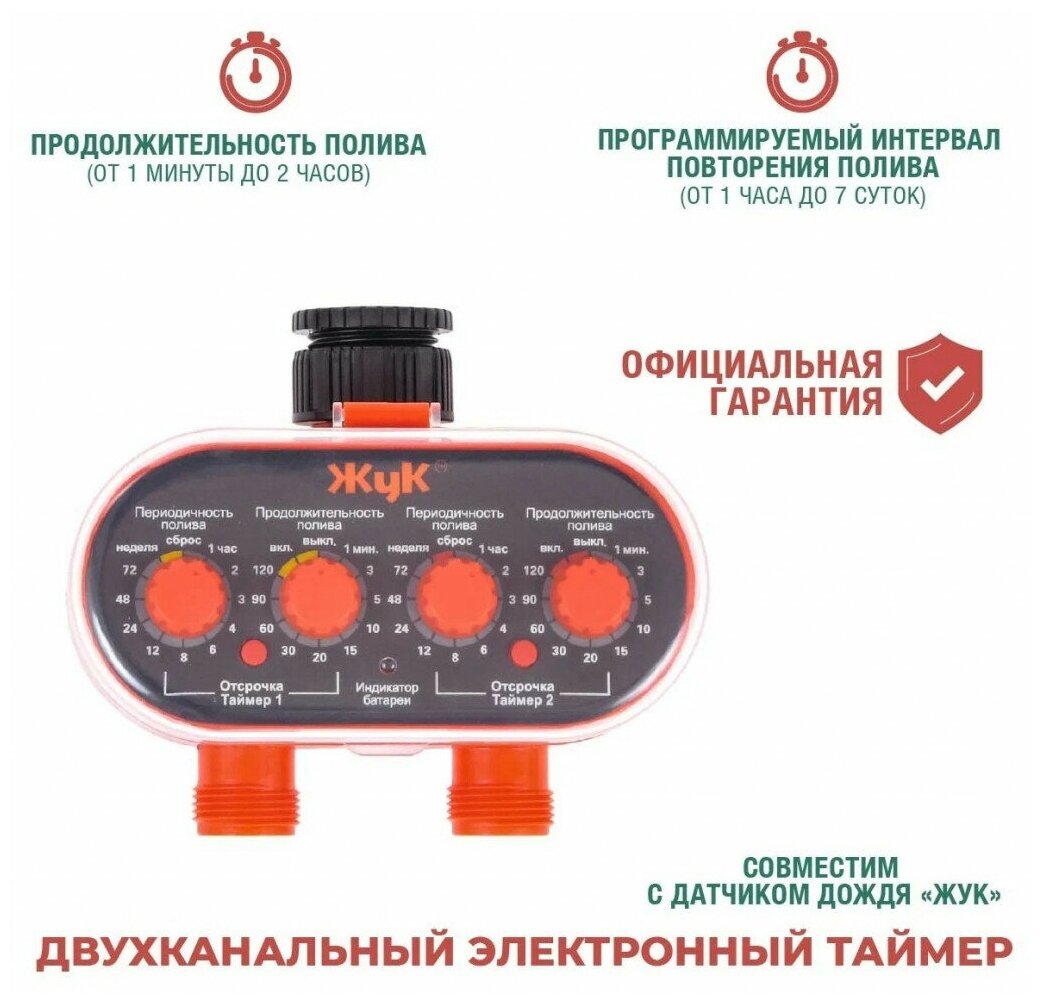 Сервис сравнения цен СкидкаГИД предлагает сравнить цены на товар «Таймер Жук для полива двухканальный (ТЭ-21) Cicle Жук тэ-21»