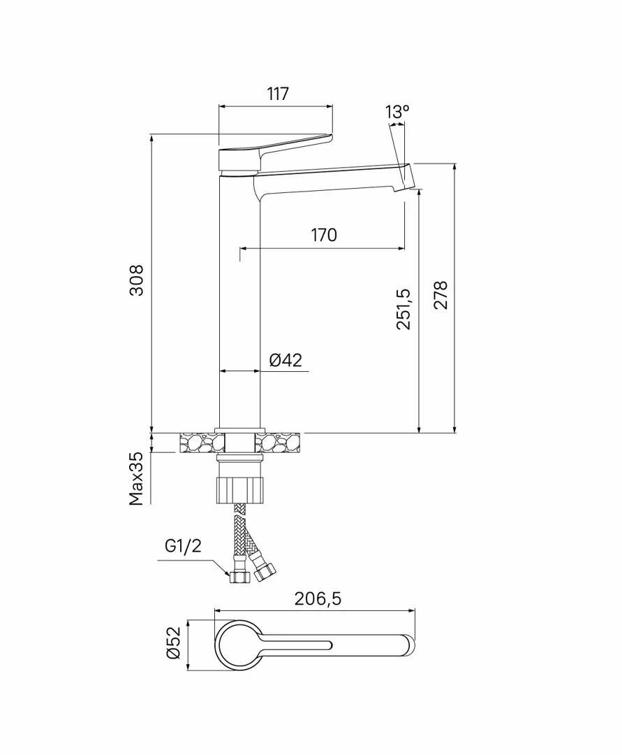 | Длина гибкой подводки (см) | 35.0 |