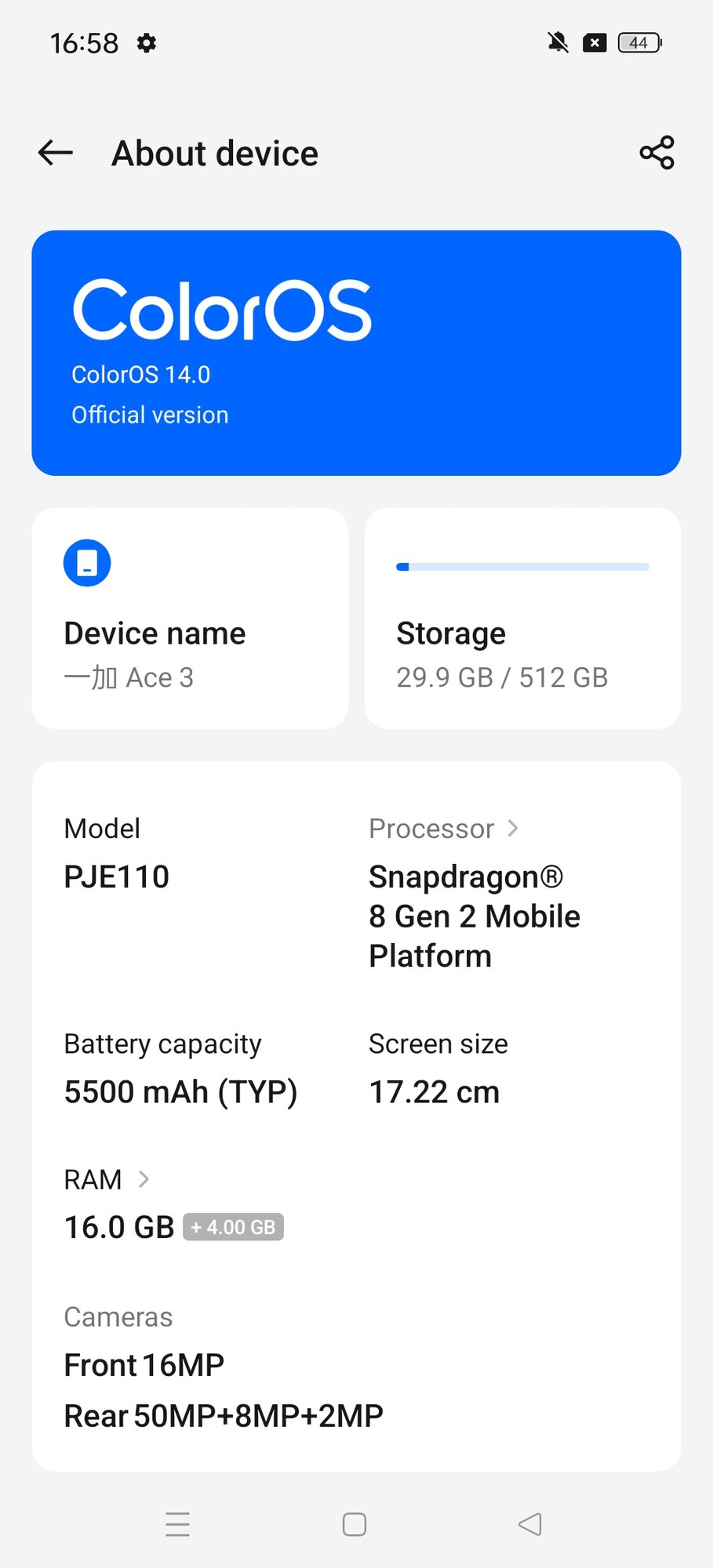 Модель: Ace 3 5G, 16/512Gb CN, Blue