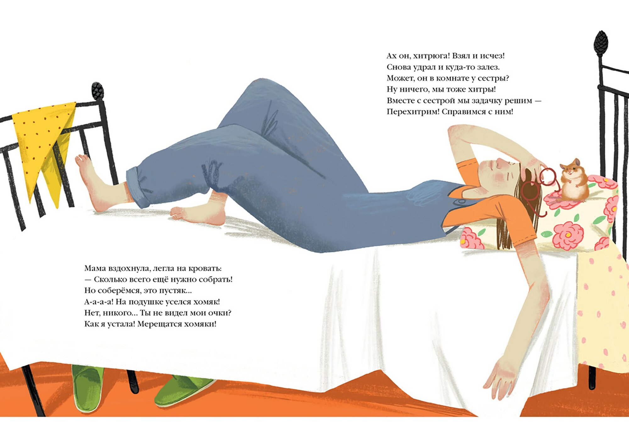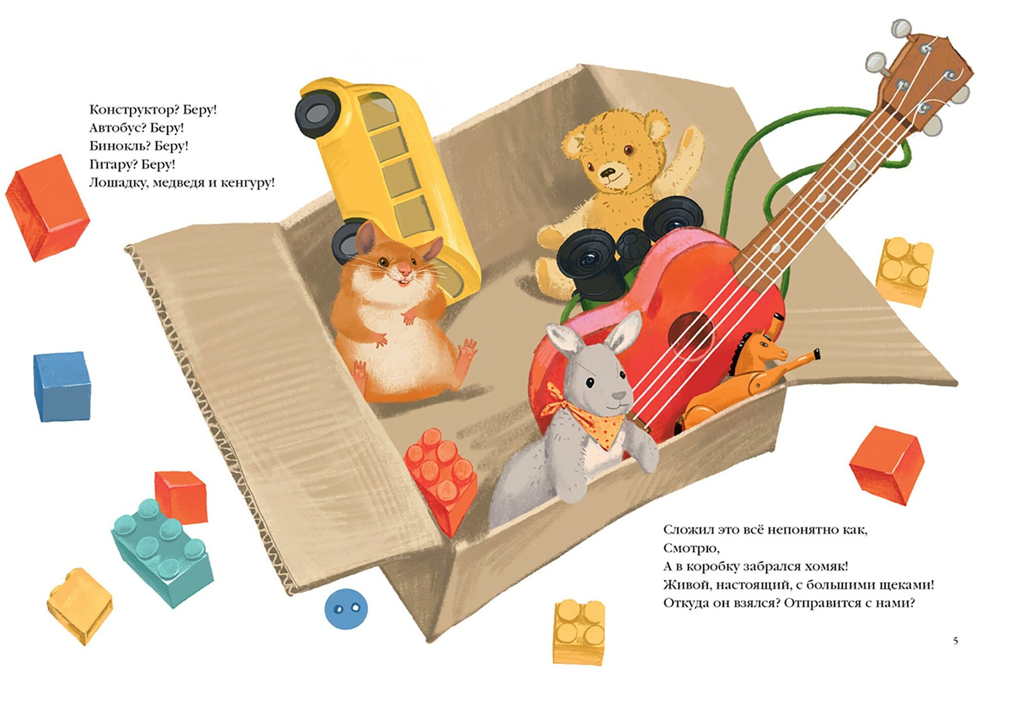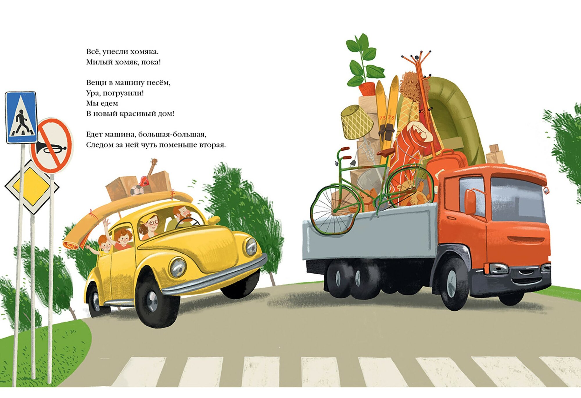 Веселая семейка собирается переехать в новый дом! Кругом переполох и суета, все бегают туда-сюда и собирают вещи. Но что это? В коробку с игрушками забрался хомяк! Откуда он взялся? И вот он уже на полке в кладовке, у мамы на подушке, у сестры в рюкзаке, на буфете, в кастрюле - везде поспевает пушистый толстяк! И вдруг унесли его. Как же так?