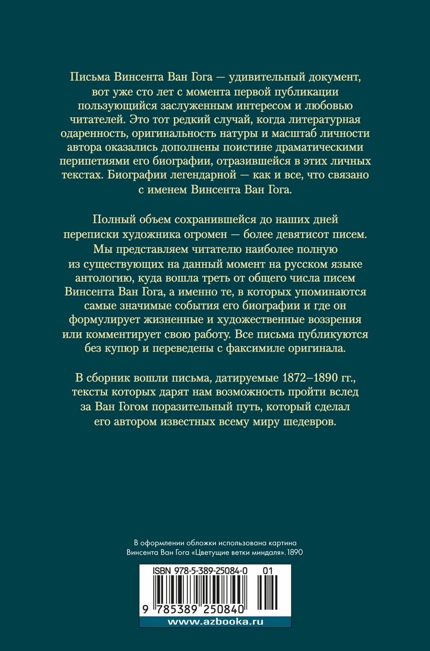 Письма Винсента Ван Гога — удивительный документ, вот уже сто лет с момента первой публикации пользующийся заслуженными интересом и любовью читателей. Это тот редкий случай, когда литературная одаренность, оригинальность натуры и масштаб личности автора оказались дополнены поистине драматическими перипетиями его биографии, отразившейся в этих личных текстах. Биографии легендарной — как и все, что связано с именем Винсента Ван Гога. Полный объем сохранившейся до наших дней переписки художника огромен — более девятисот писем. Мы представляем читателю наиболее полную из существующих на данный момент на русском языке антологию, куда вошла треть от общего числа писем Винсента Ван Гога, а именно те, в которых упоминаются самые значимые события его биографии и где он формулирует жизненные и художественные воззрения или комментирует свою работу. Все письма публикуются без купюр и переведены с факсимиле оригинала. В сборник вошли письма, датируемые 1872–1890 гг., тексты которых дарят нам возможность пройти вслед за Ван Гогом поразительный путь, который сделал его автором известных всему миру шедевров.