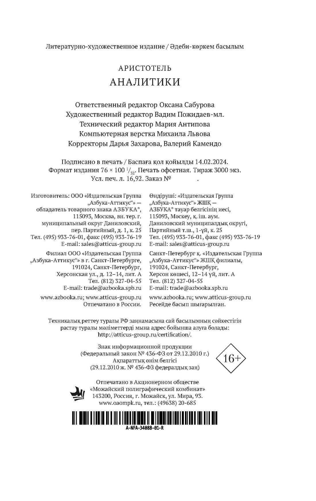 Книга: Аналитики (Аристотель); Азбука, 2024