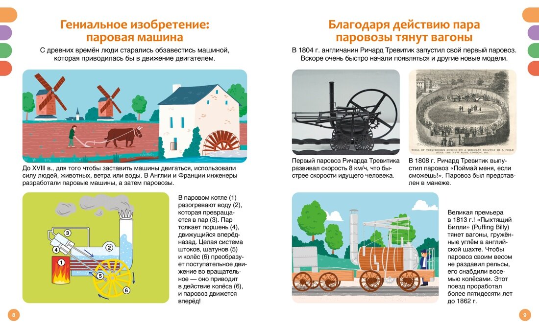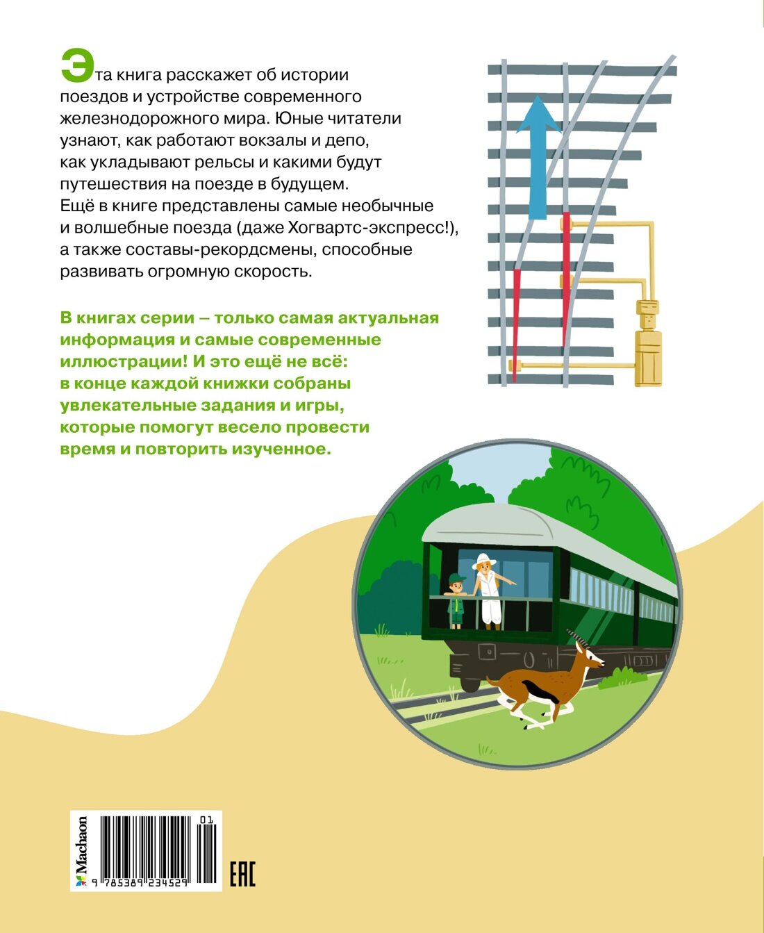 Эта книга расскажет об истории поездов и устройстве современного железнодорожного мира. Юные читатели узнают, как работают вокзалы и депо, как укладывают рельсы и какими будут путешествия на поезде в будущем. Ещё в книге представлены самые необычные и волшебные поезда (даже Хогвартс-экспресс!), а также составы-рекордсмены, способные развивать огромную скорость. В книгах серии – только самая актуальная информация и самые современные иллюстрации! И это ещё не всё: в конце каждой книжки собраны увлекательные задания и игры, которые помогут весело провести время и повторить изученное.