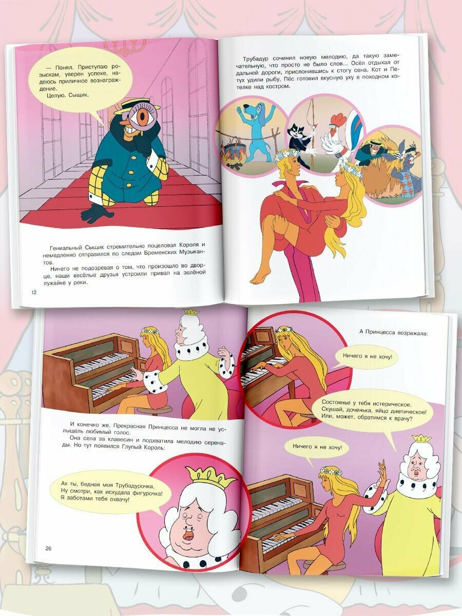 В 1969 году на экраны вышел мультфильм «Бременские музыканты», созданный по мотивам сказки братьев Гримм. Сценарий написали весёлые молодые авторы — актёр, режиссёр и писатель Василий Ливанов и поэт и драматург Юрий Энтин. Мультфильм был необычайно популярен, вся страна распевала песни Трубадура, Разбойников, Короля и Принцессы (стихи к песням тоже написал Юрий Энтин, а музыку — Геннадий Гладков). Поэтому в 1973 году вышел второй мультфильм: «По следам Бременских музыкантов». Эта книга — продолжение приключений любимых героев. Разумеется, Глупый Король не мог допустить, чтобы единственная наследница престола Принцесса жила в фургоне бродячих музыкантов и, может быть, даже выступала вместе с ними!И тогда он нанял Гениального Сыщика, чтобы найти беглую дочь.