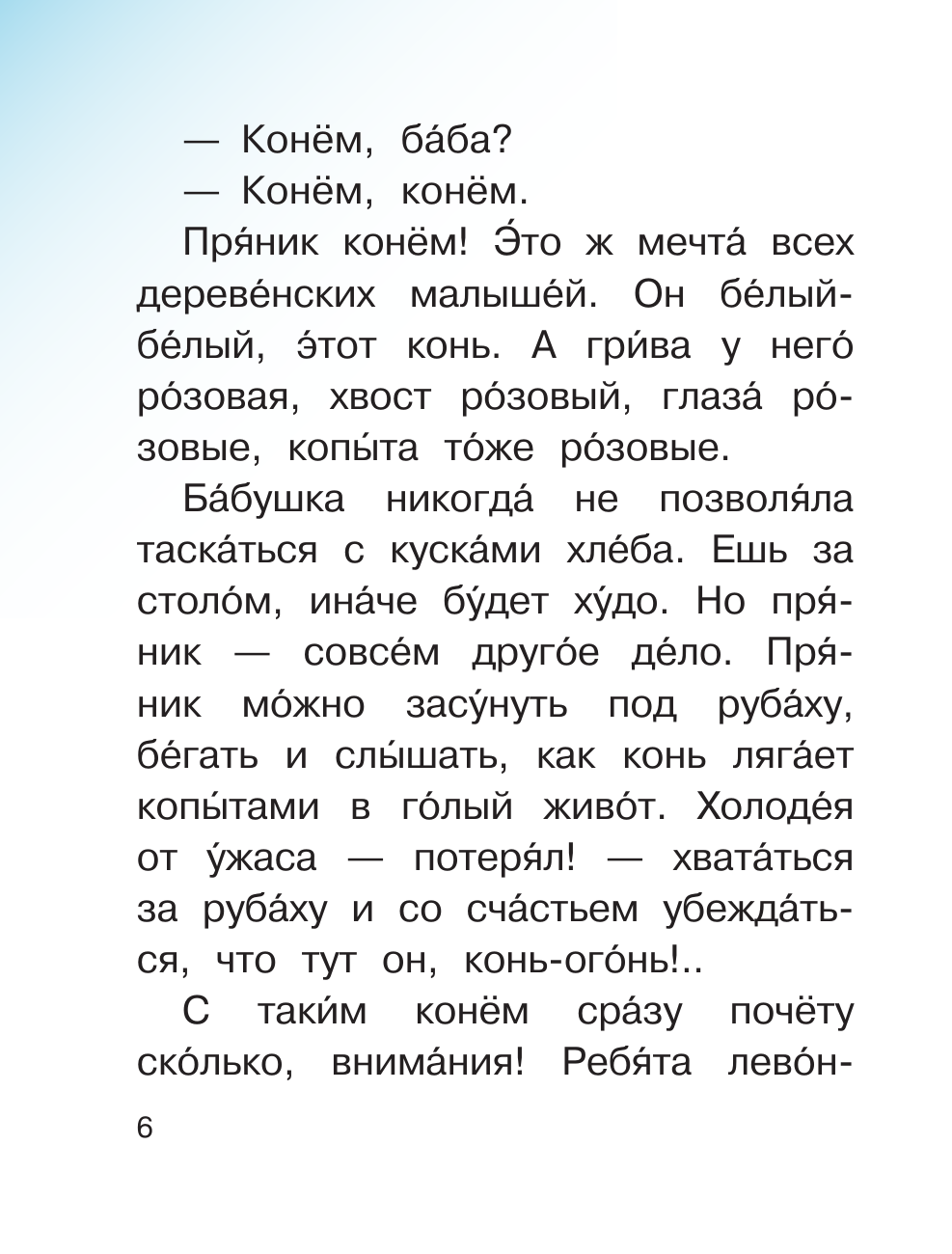 Книги серии «Читаем сами без мамы» — это уникальное собрание золотого фонда отечественной литературы! Сказки, стихи, рассказы с красочными иллюстрациями понравятся каждому малышу! Все произведения серии входят в обязательную программу по чтению, а крупный шрифт и ударения помогут ребёнку самостоятельно познакомиться с шедеврами детской мировой литературы. В этой книге юные читатели прочитают произведение В. Астафьева «Конь с розовой гривой». Вместе с героем истории ребята научатся быть честными, ответственными и добрыми. А красочные декорации таежной деревни на берегах реки Енисей помогут лучше понять прочитанное.Читайте с пользой и удовольствием!