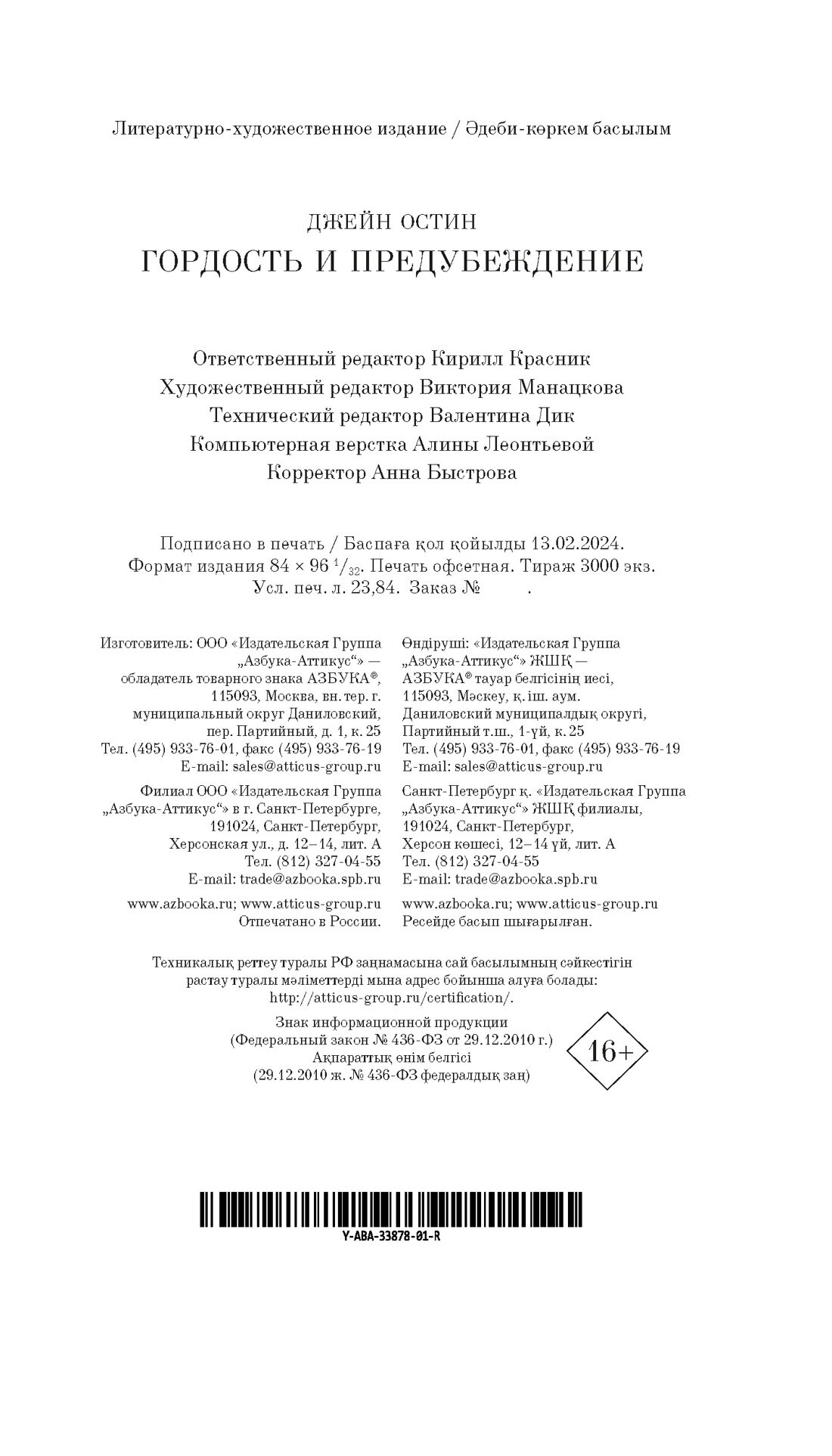 Книга: Гордость и предубеждение (Джейн Остен); Азбука, 2024