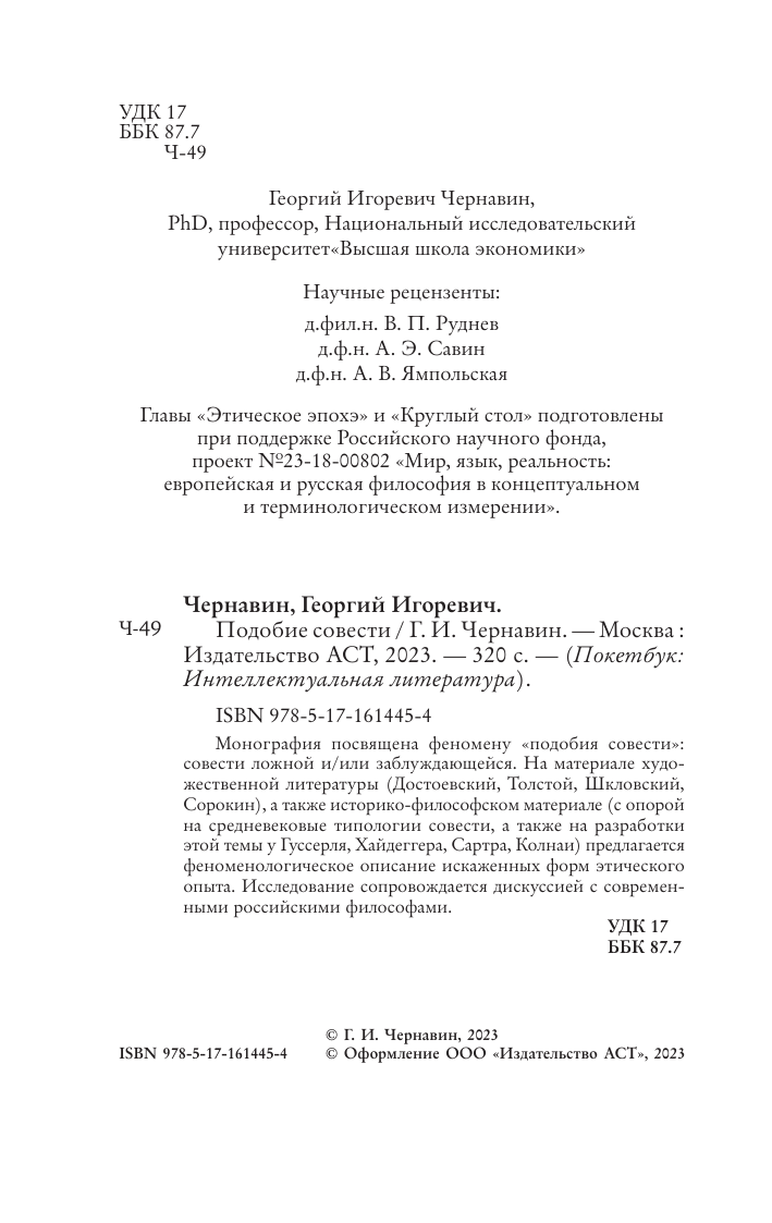 Подобие совести. Вина долг и этические заблуждения (Георгий Игоревич Чернавин); АСТ, 2024