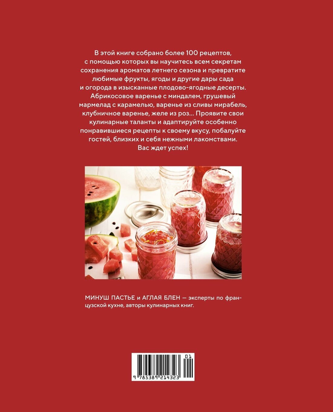 Варенье, желе и другие сладкие десерты длительного хранения можно приготовить практически из любых фруктов, ягод, а также из некоторых видов овощей и орехов. Познакомьтесь с тем, как это делают прославленные кулинарки — французские хозяйки, и вы откроете для себя новые сочетания вкусов и узнаете, как ярче раскрыть аромат привычных плодов и ягод. В книге содержится более 100 рецептов переработки как плодов из собственного сада и огорода (например, яблок, груш, смородины, клубники и многого другого), так и даров природы с ярких прилавков магазина или рынка (в их числе манго, гранат, банан, персик, апельсин и другие). Приводятся полезные советы по соблюдению технологии приготовления и хранения, даются ответы на часто возникающие вопросы, а также учтена сезонность. Настоящий мастер-класс для любителей сладких домашних заготовок! «Варка варенья — лучший способ немного задержать время, которое всегда проходит слишком быстро. Чтобы все получилось, следуйте простым рекомендациям, которые вы найдете на страницах этой книги. Очень важно учитывать сезонность: невозможно сделать что-то стоящее из тепличных плодов, никогда не видевших солнца. Не стоит маскировать вкус специями или ароматизаторами. Для хорошего варенья не нужны никакие ухищрения — только спелые фрукты и много любви». (Минуш Пастье и Аглая Блен)