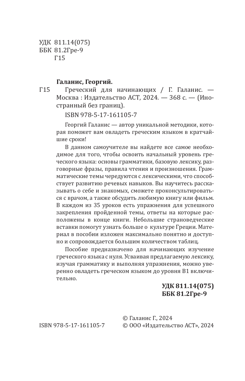 Книга: Греческий для начинающих (Георгий Галанис); АСТ, 2024