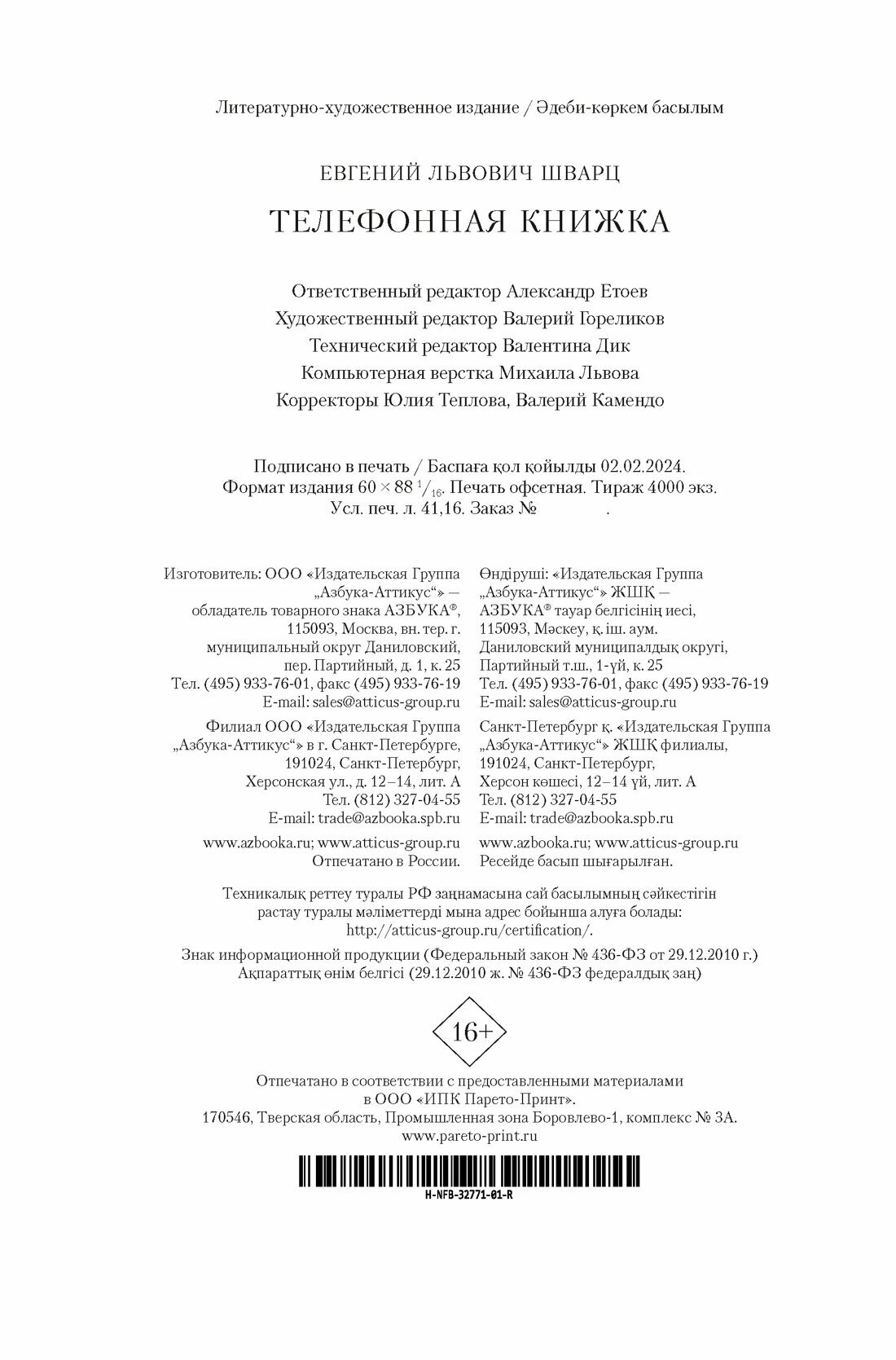 Книга: Телефонная книжка (Евгений Львович Шварц); Азбука, 2024
