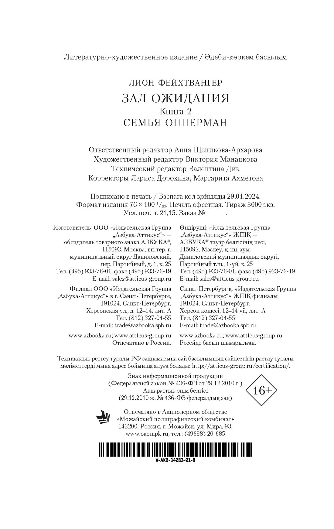 Зал ожидания. Книга 2. Семья Опперман (Лион Фейхтвангер); Азбука, 2024