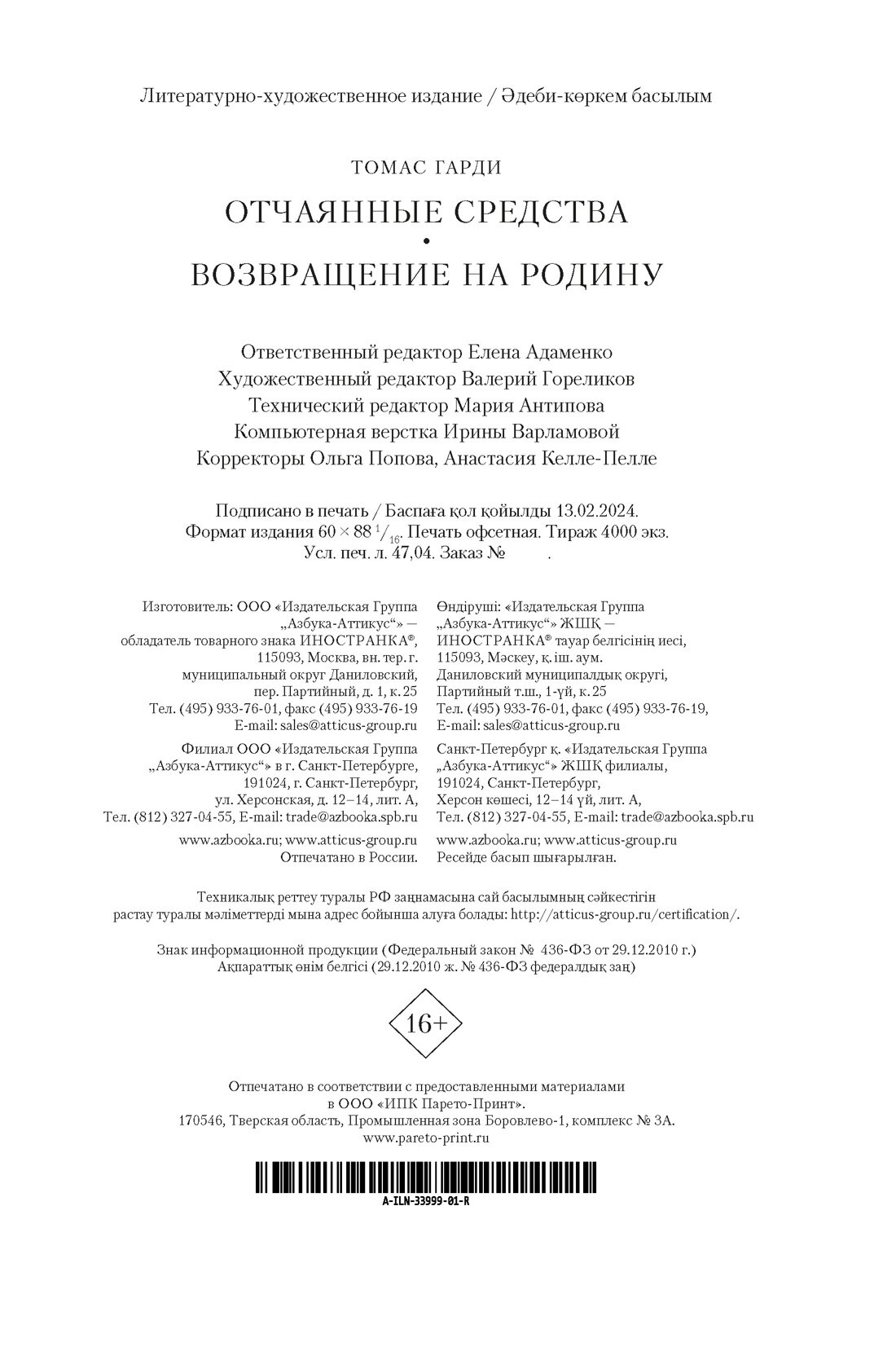 Отчаянные средства. Возвращение на родину (Томас Гарди); Иностранка, 2024