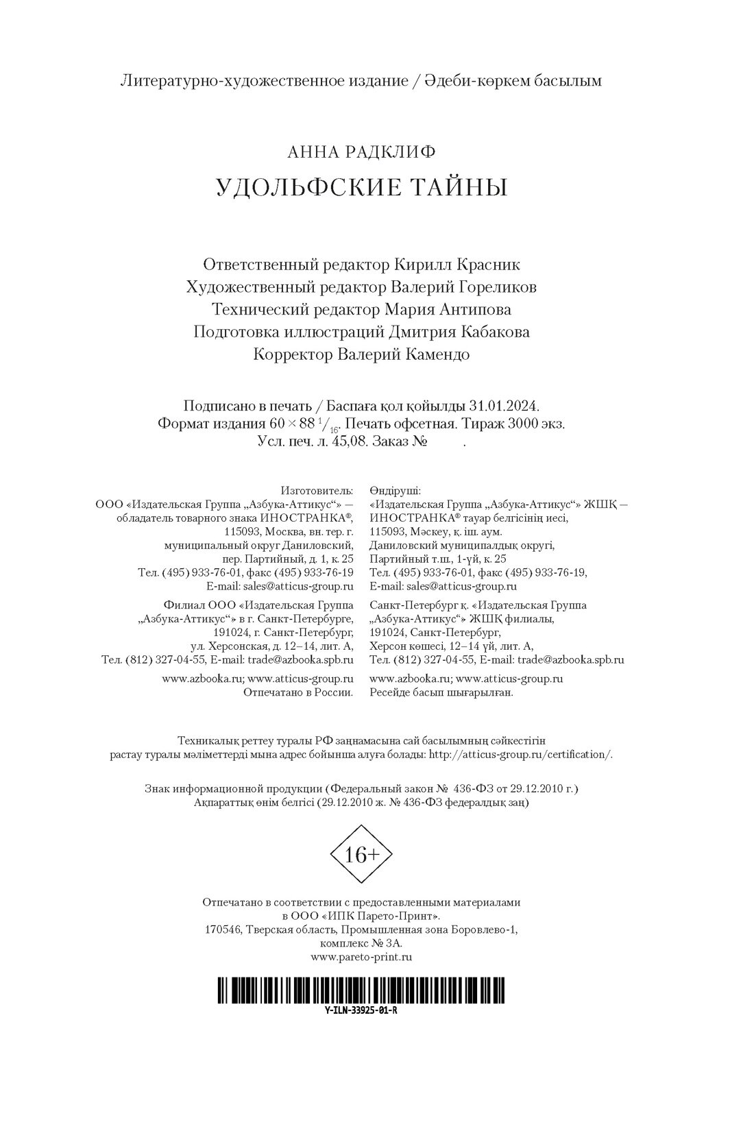 Книга: Удольфские тайны (Анна Радклиф); Иностранка, 2024