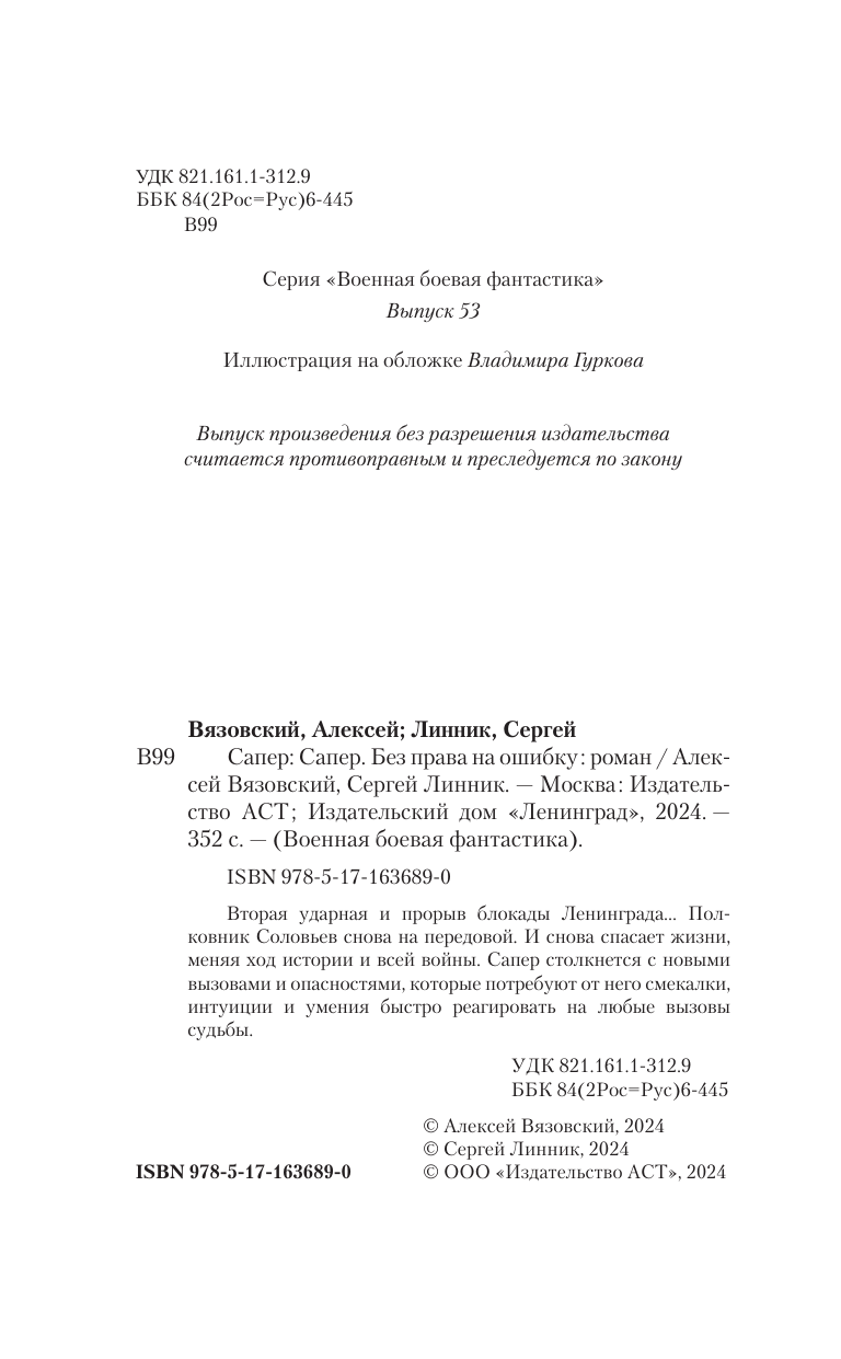 Сапер. Без права на ошибку (Алексей Викторович Вязовский, Сергей Владимирович Линник); АСТ, 2024
