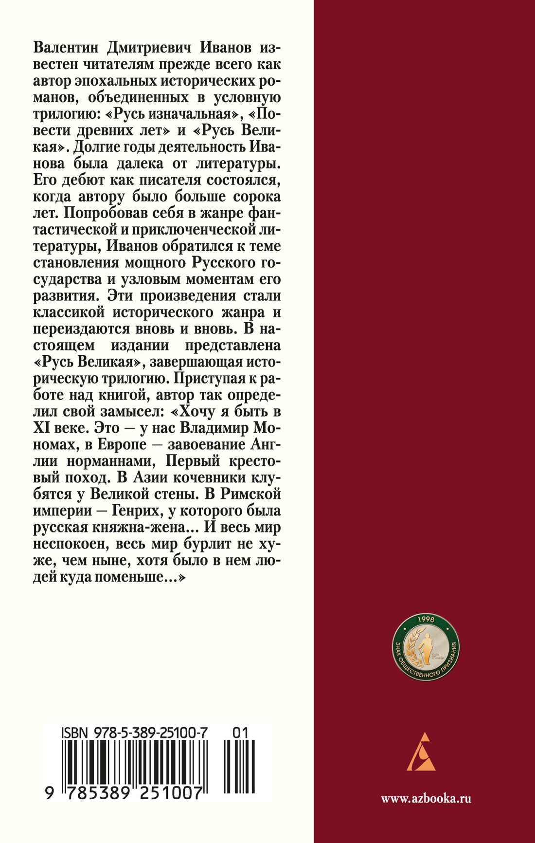 Книга: Русь Великая (Валентин Дмитриевич Иванов); Азбука, 2024