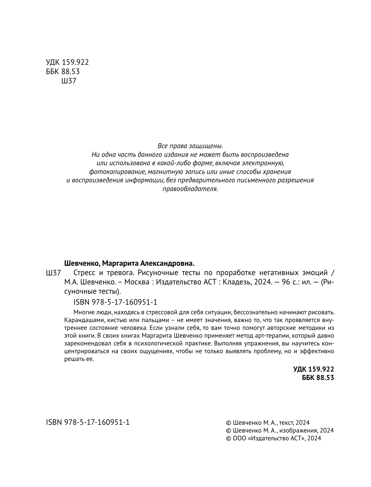 Стресс и тревога. Рисуночные тесты по проработке негативных эмоций (Маргарита Александровна Шевченко); Издательство АСТ, 2025