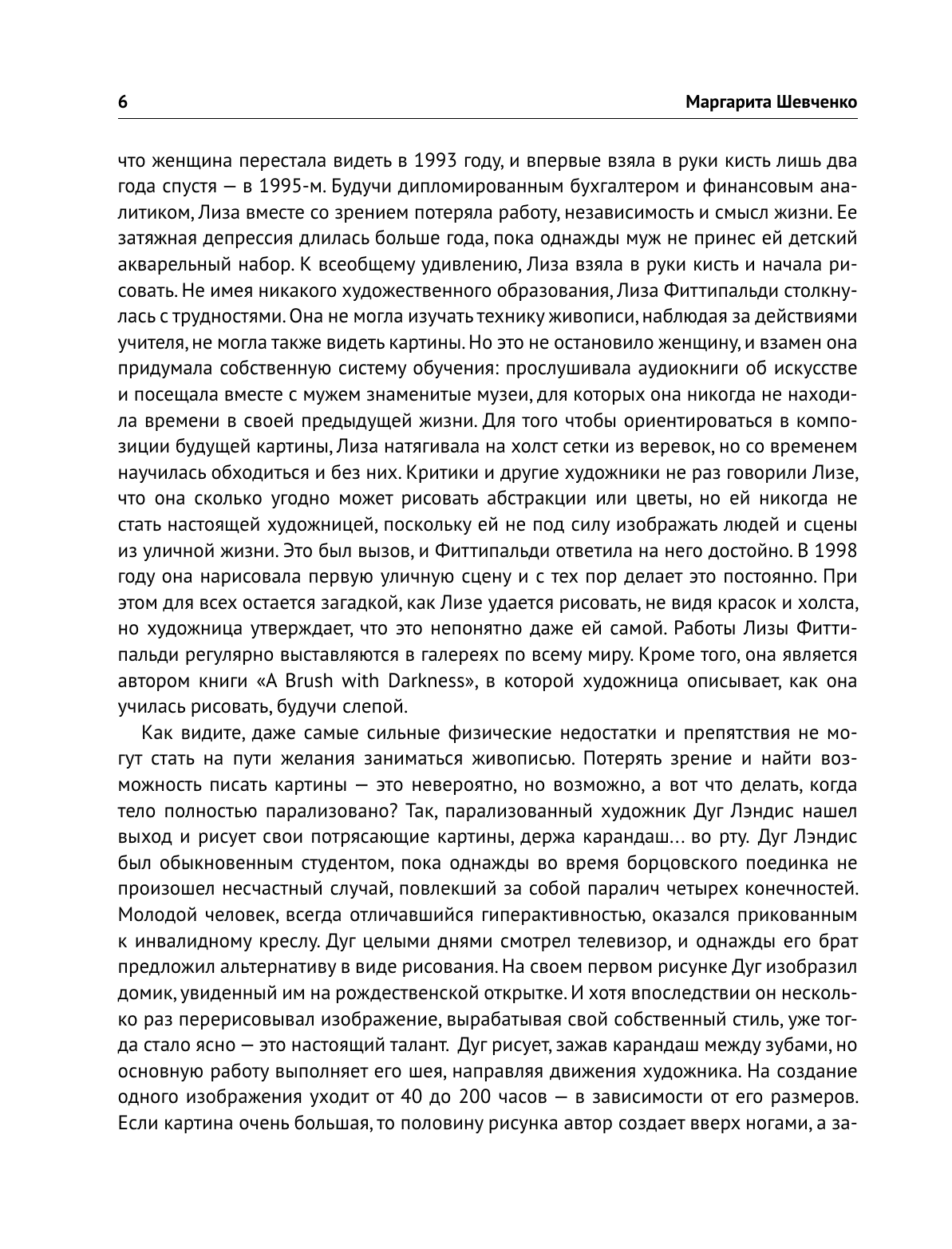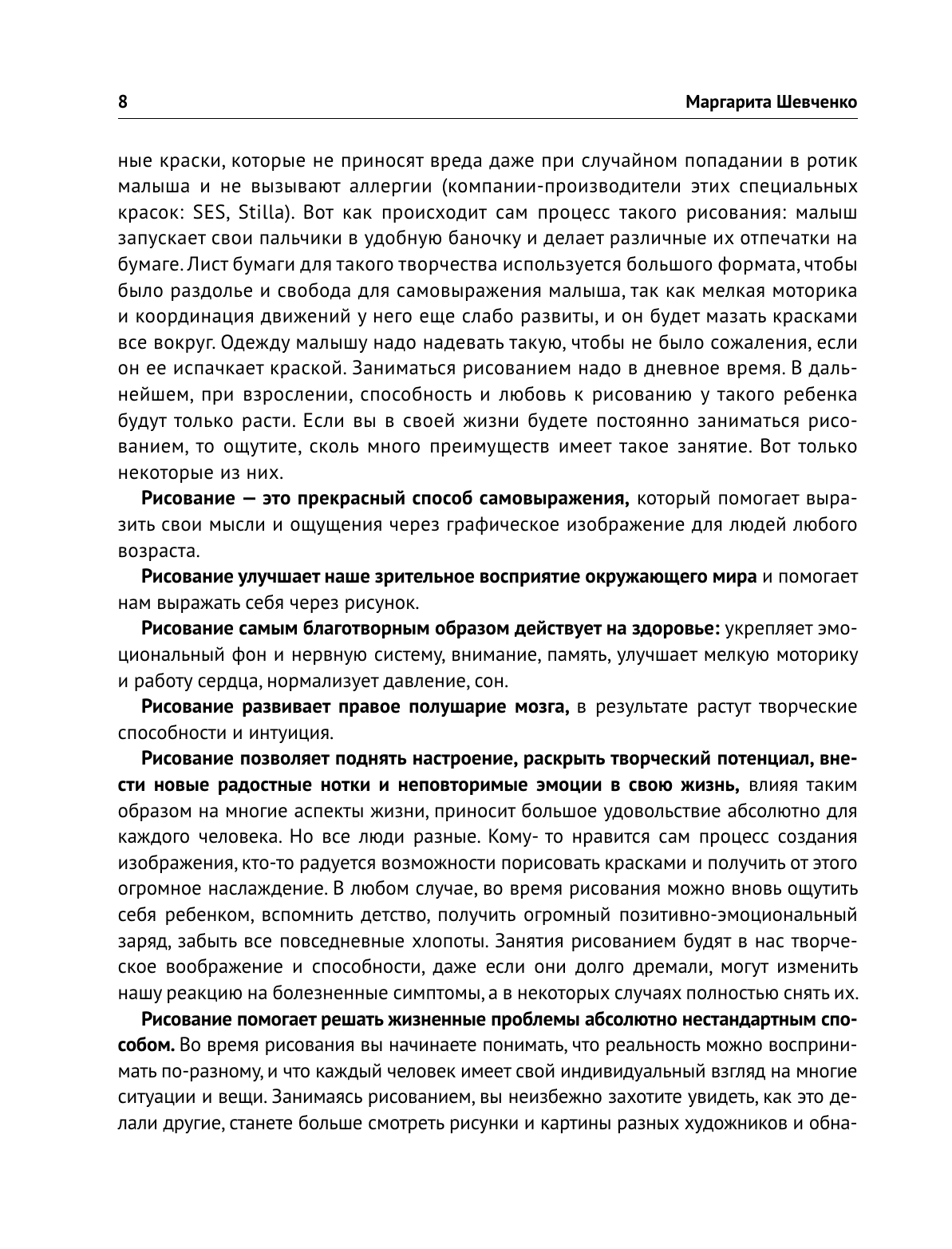 В своих книгах Маргарита Шевченко применяет метод арт-терапии, который давно зарекомендовал себя в психологической практике.