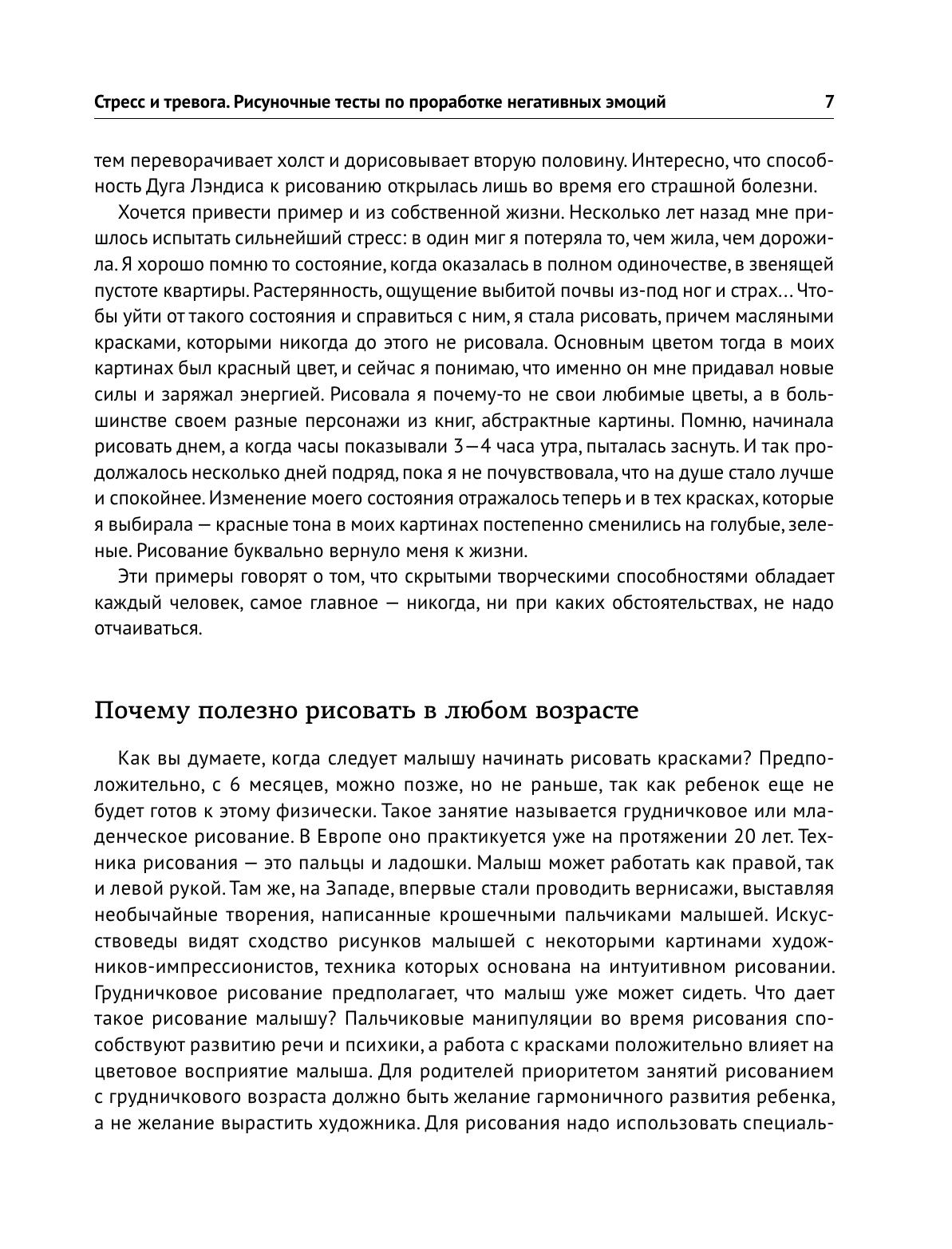 Многие люди, находясь в стрессовой для себя ситуации, бессознательно начинают рисовать. Карандашами, кистью или пальцами – не имеет значения, важно то, что так проявляется внутреннее состояние человека. Если узнали себя, то вам точно помогут авторские методики из этой книги.