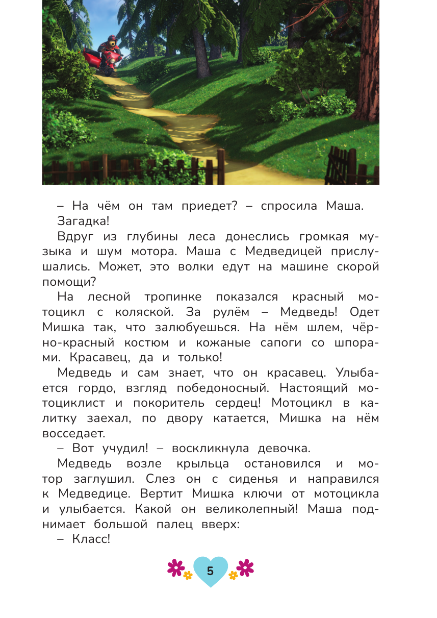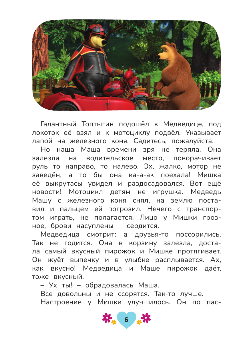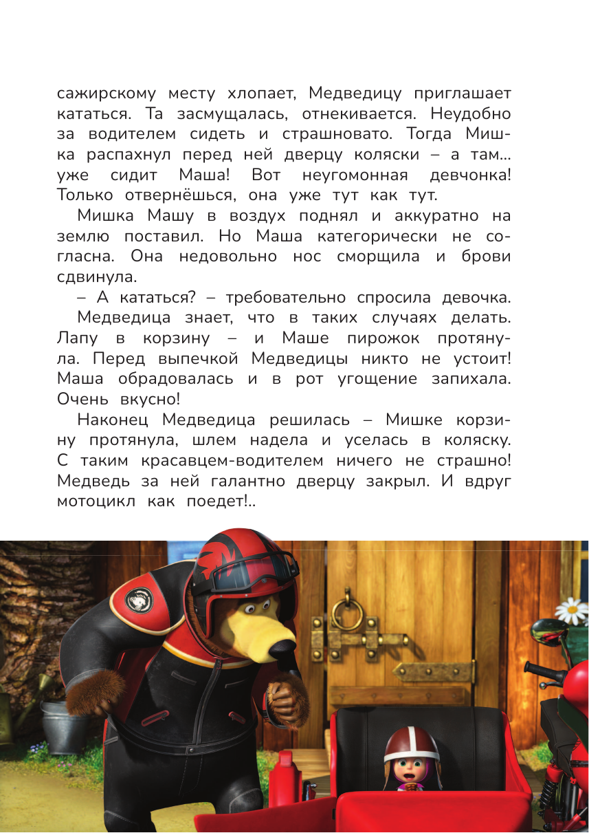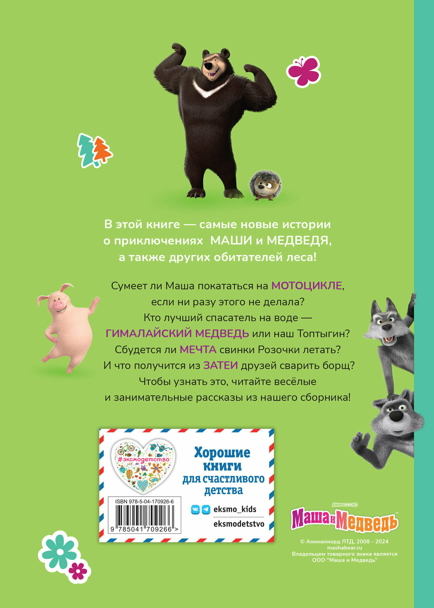 В книге собраны 5 увлекательных рассказов про Машу, Медведя и других обитателей леса. Сумеет ли Маша покататься на мотоцикле, если ни разу этого не делала? Кто лучший спасатель на воде – Гималайский медведь или наш Топтыгин? Сбудется ли мечта свинки Розочки летать? И что получится из затеи друзей сварить борщ? Чтобы узнать это, читайте весёлые и занимательные рассказы нашего сборника!