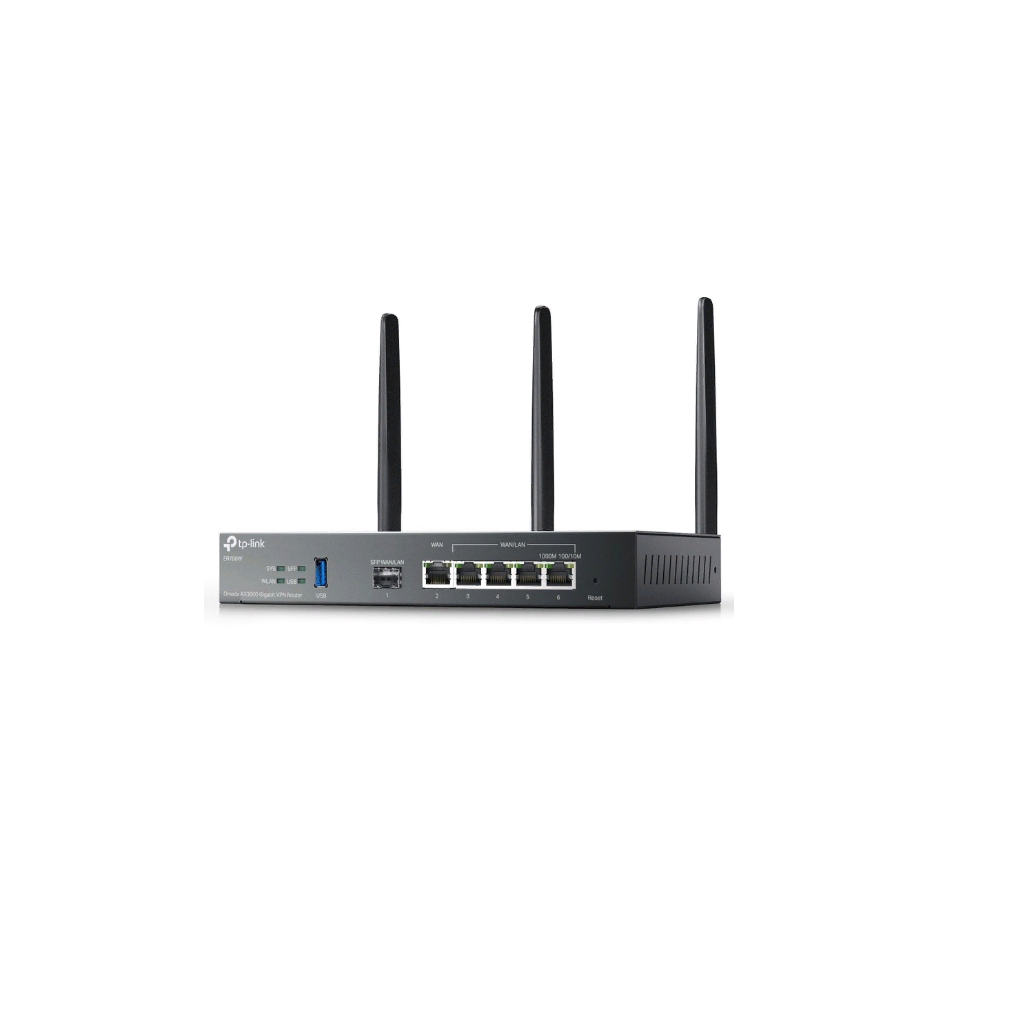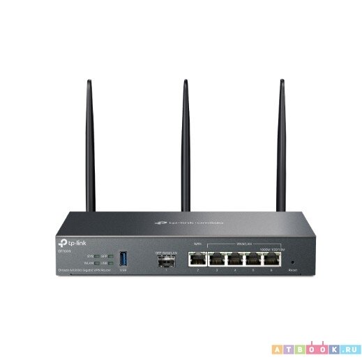 Маршрутизатор TP-LINK VPN Omada с гигабитными портами и поддержкой Wi-Fi AX3000 1 гиг. SFP WAN/LAN 1 гиг. RJ45 WAN 4 гиг. RJ45 WAN/LAN USB ER706W
