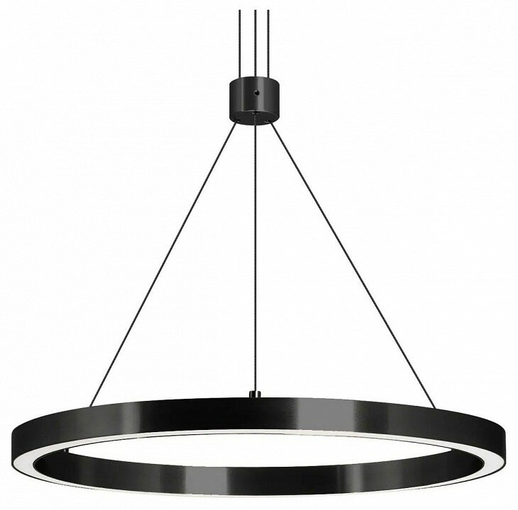 Подвесной светильник. Мощность 36 Вт, св. поток 2050 лм, 57 лм/Вт, дневной 4000 K, CRI>90, угол 120°, напряжение питания 230 В. Черный круглый корпус из алюминия, экран силикон, степень защиты IP20. Размер: диаметр 600 мм, высота 25 мм, ширина профиля 25 мм, размер чаши: диаметр 170 мм, высота 40 мм. Монтаж подвесной, длина подвеса 1200мм. Пульсация