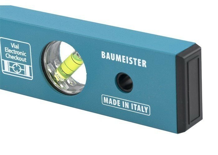 Уровень оснащен тремя пузырьковыми колбами, необходимыми для работы под углами 90° и 45°. Обладает прочной конструкцией из алюминиевого профиля толщиной 2 мм. Устойчив к продольным скручиваниям и повышенным нагрузкам.