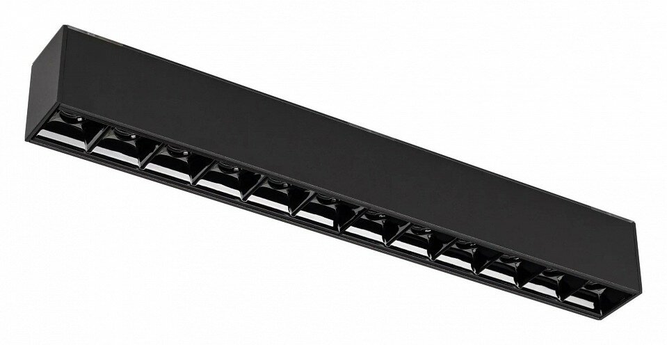 Светильник для магнитных треков шириной 45мм, 12Вт с управлением DALI. Цвет свечения ДНЕВНОЙ 4000K, световой поток 890лм, угол 15°, CRI>90. Корпус прямоугольный, металл, цвет черный, IP20. Размеры LxWxH 322x35x43мм. Входное напряжение DC24V, мощность 12Вт. Драйвер поставляется отдельно.