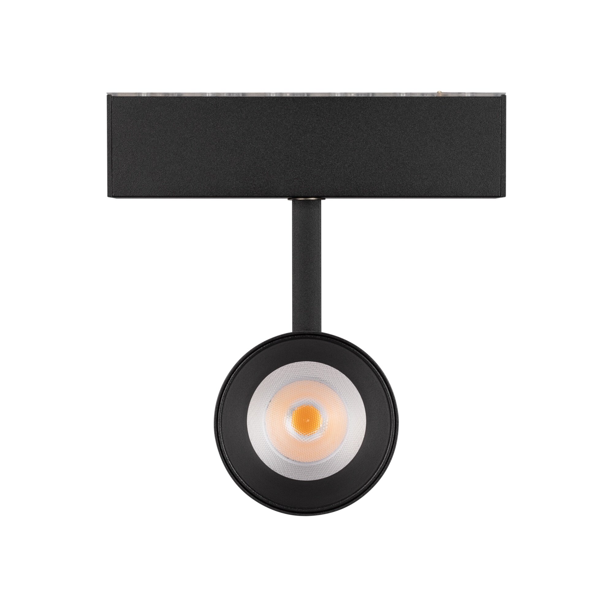 Светильник поворотный для магнитных треков шириной 45мм, 12Вт с управлением DALI. Цвет свечения ТЕПЛЫЙ 3000K, световой поток 900лм, угол 36°, CRI>90. Корпус прямоугольный, металл, цвет белый, IP20. Размеры LxWxH 84x35x178мм. Входное напряжение DC24V, мощность 12Вт. Драйвер поставляется отдельно.