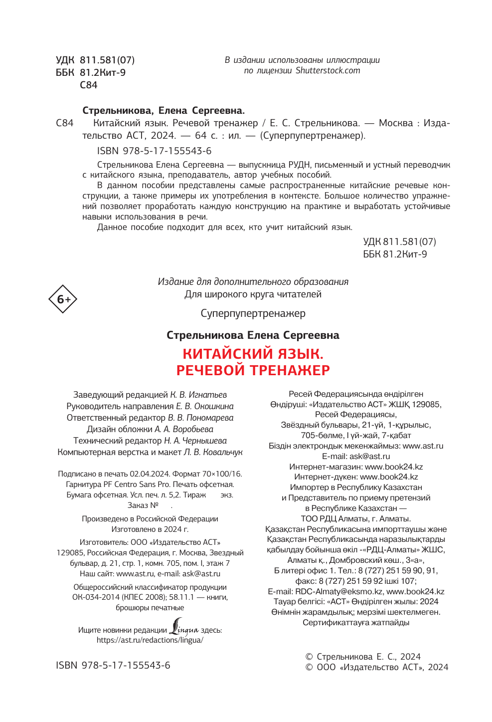 Китайский язык. Речевой тренажер (Елена Стрельникова); АСТ, Lingua, 2024