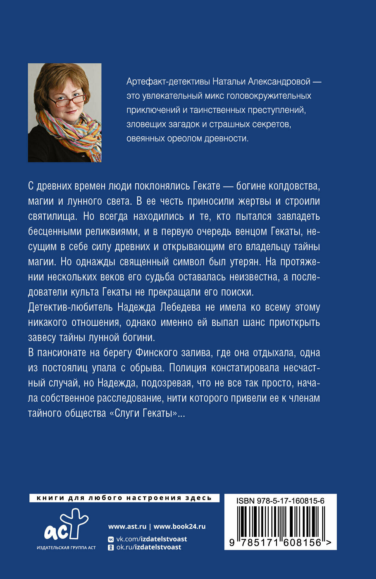 С древних времен люди поклонялись Гекате - богине колдовства, магии и лунного света. В ее честь приносили жертвы и строили святилища. Но всегда находились и те, кто пытался завладеть бесценными реликвиями, и в первую очередь венцом Гекаты, несущим в себе силу древних и открывающим его владельцу тайны магии. Но однажды священный символ был утерян. На протяжении нескольких веков его судьба оставалась неизвестна, а последователи культа Гекаты не прекращали его поиски. Детектив-любитель Надежда Лебедева не имела ко всему этому никакого отношения, однако именно ей выпал шанс приоткрыть завесу тайны лунной богини. В пансионате на берегу Финского залива, где она отдыхала, одна из постоялиц упала с обрыва. Полиция констатировала несчастный случай, но Надежда, подозревая, что не все так просто, начала собственное расследование, нити которого привели ее к членам тайного общества «Слуги Гекаты»...