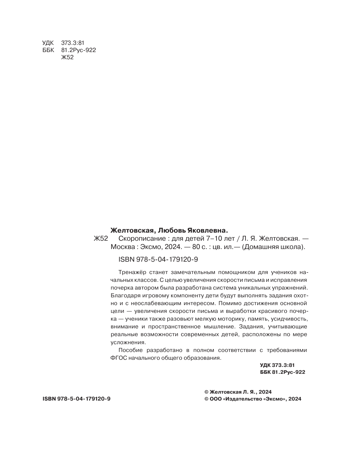 Скорописание: для детей 7–10 лет (Желтовская Любовь Яковлевна); ООО "Издательство "Эксмо", 2024