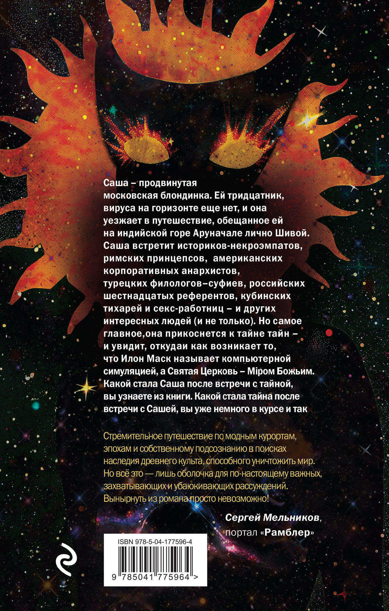 Саша встретит историков-некроэмпатов, римских принцепсов, американских корпоративных анархистов, турецких филологов-суфиев, российских шестнадцатых референтов, кубинских тихарей и секс-работниц - и других интересных людей (и не только). Но самое главное, она прикоснется к тайне тайн - и увидит, откуда и как возникает то, что Илон Маск называет компьютерной симуляцией, а Святая Церковь - Мiром Божьим.