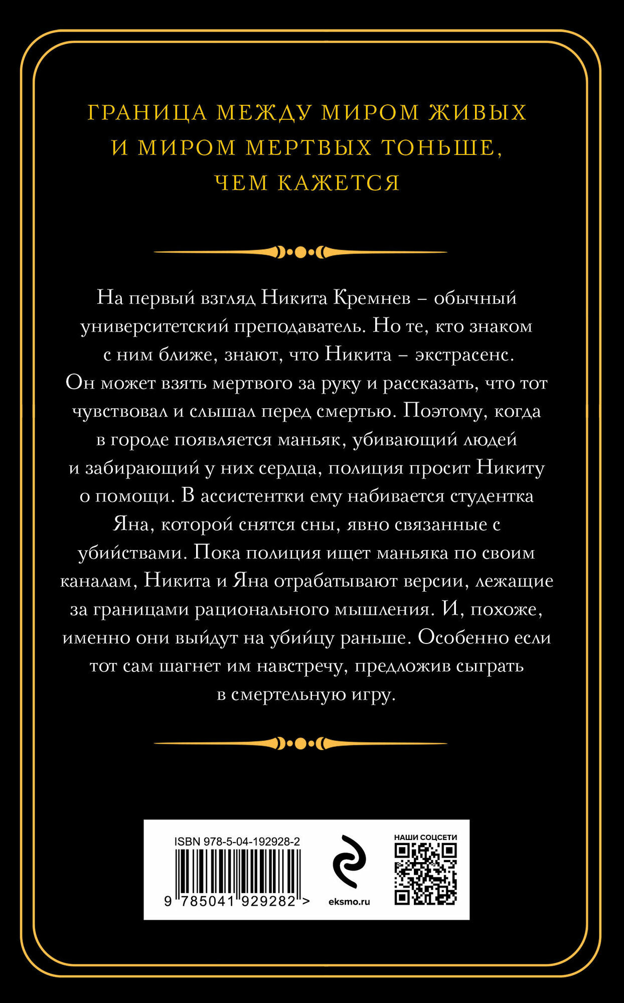 На первый взгляд Никита Кремнев – обычный университетский преподаватель. Но те, кто знаком с ним ближе, знают, что Никита – экстрасенс. Он может взять мертвого за руку и рассказать, что тот чувствовал и слышал перед смертью. Поэтому, когда в городе появляется маньяк, убивающий людей и забирающий у них сердца, полиция просит Никиту о помощи. В ассистентки ему набивается студентка Яна, которой снятся сны, явно связанные с убийствами. Пока полиция ищет маньяка по своим каналам, Никита и Яна отрабатывают версии, лежащие за границами рационального мышления. И, похоже, именно они выйдут на убийцу раньше. Особенно если тот сам шагнет им навстречу, предложив сыграть в смертельную игру.