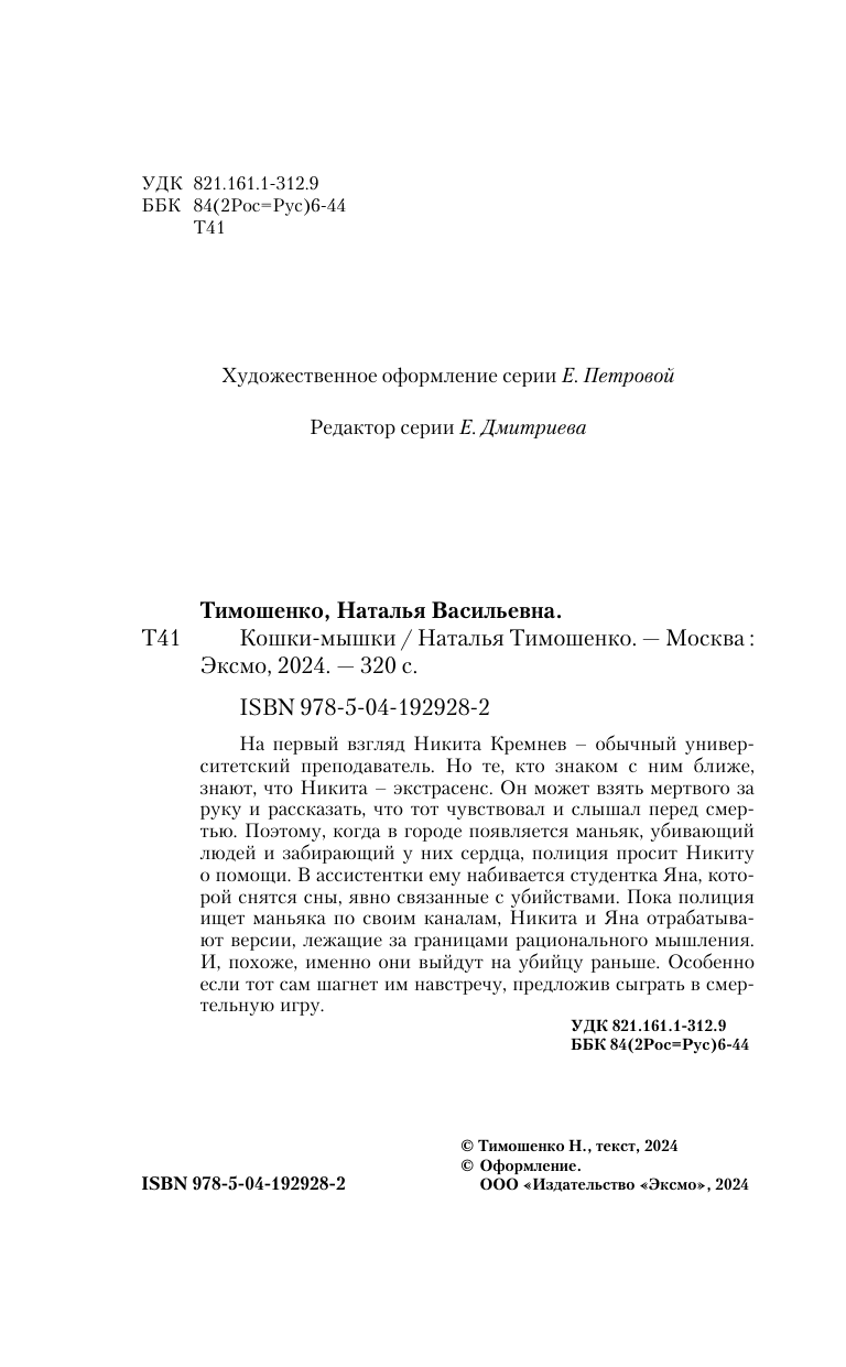 Книга: Кошки-мышки (Тимошенко Наталья Васильевна); ООО "Издательство "Эксмо", 2024