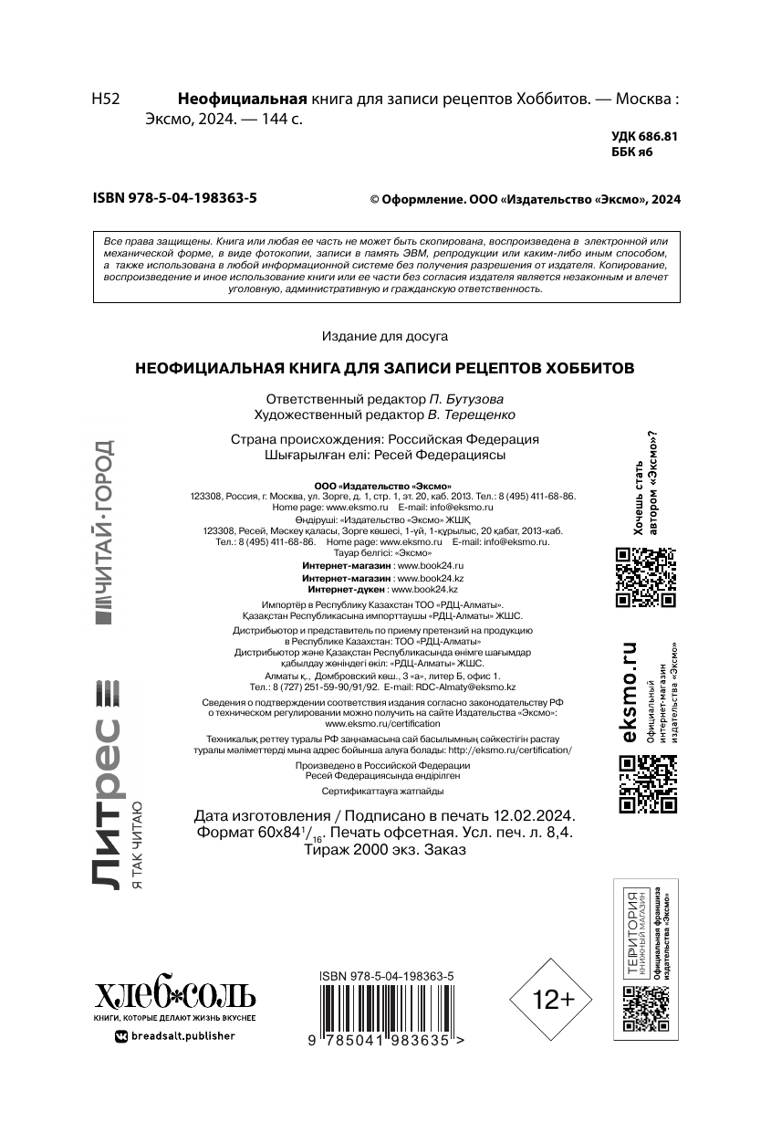 Неофициальная книга для записи рецептов Хоббитов (без автора); ООО "Издательство "Эксмо", 2024