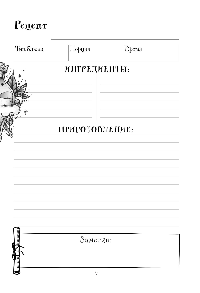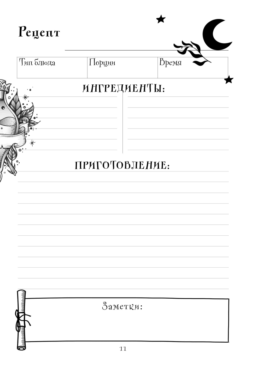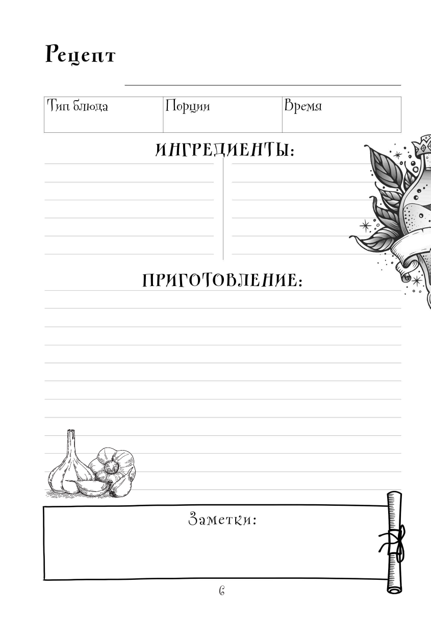 Любимая вселенная всегда рядом. Книга для записи рецептов в тематике вселенной Ведьмака сделает такую обыденную вещь, как приготовление еды, особенным ритуалом с капелькой магии. Внутри вас ждет волшебный и удобный дизайн, который поможет распределить рецепты по типу, указать, сколько времени потребуется блюду, пока вы охотитесь на чудовищ. О такой книге мечтал бы даже Весемир.