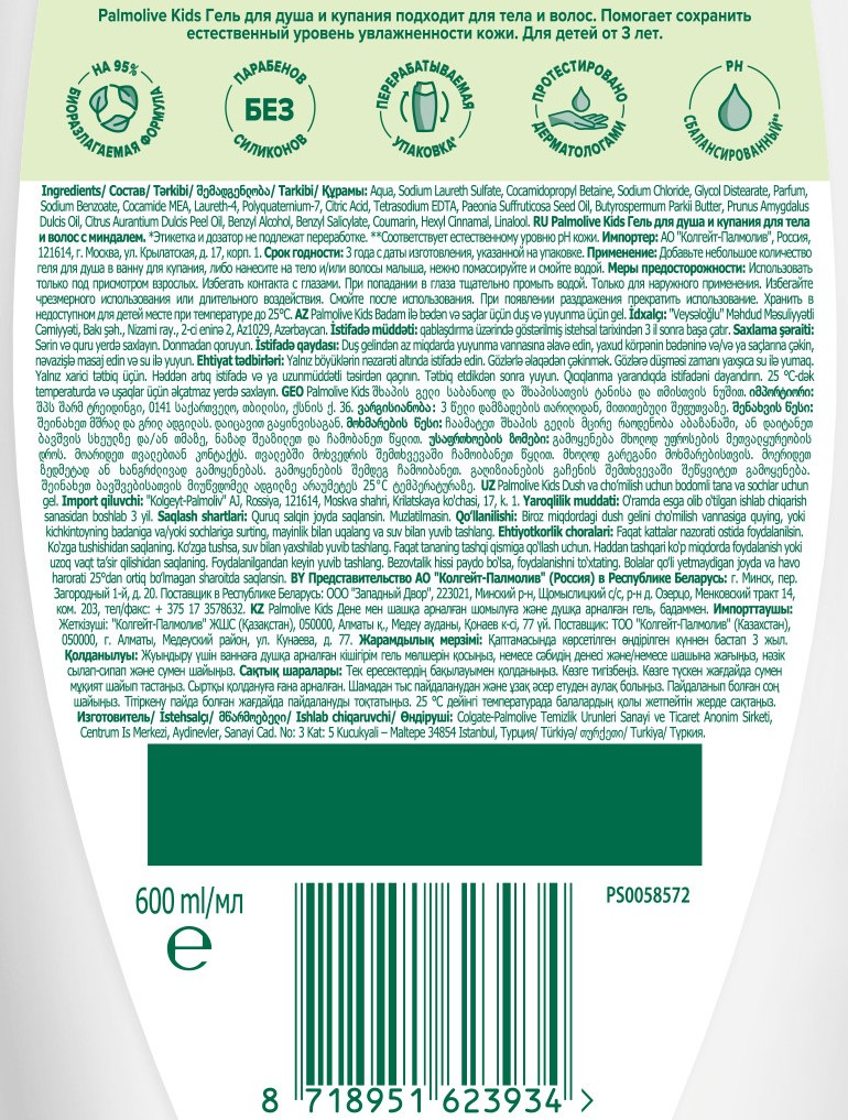 | Меры предосторожности | При попадании в глаза тщательно промыть водой. Только для наружного применения. Для детей от 3 лет. |