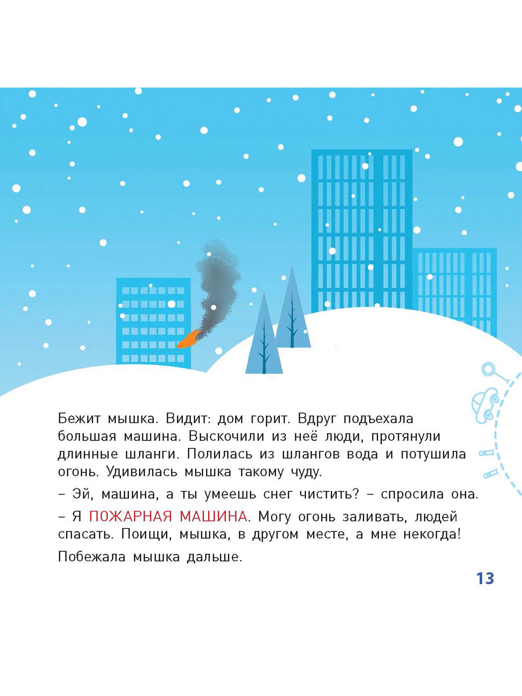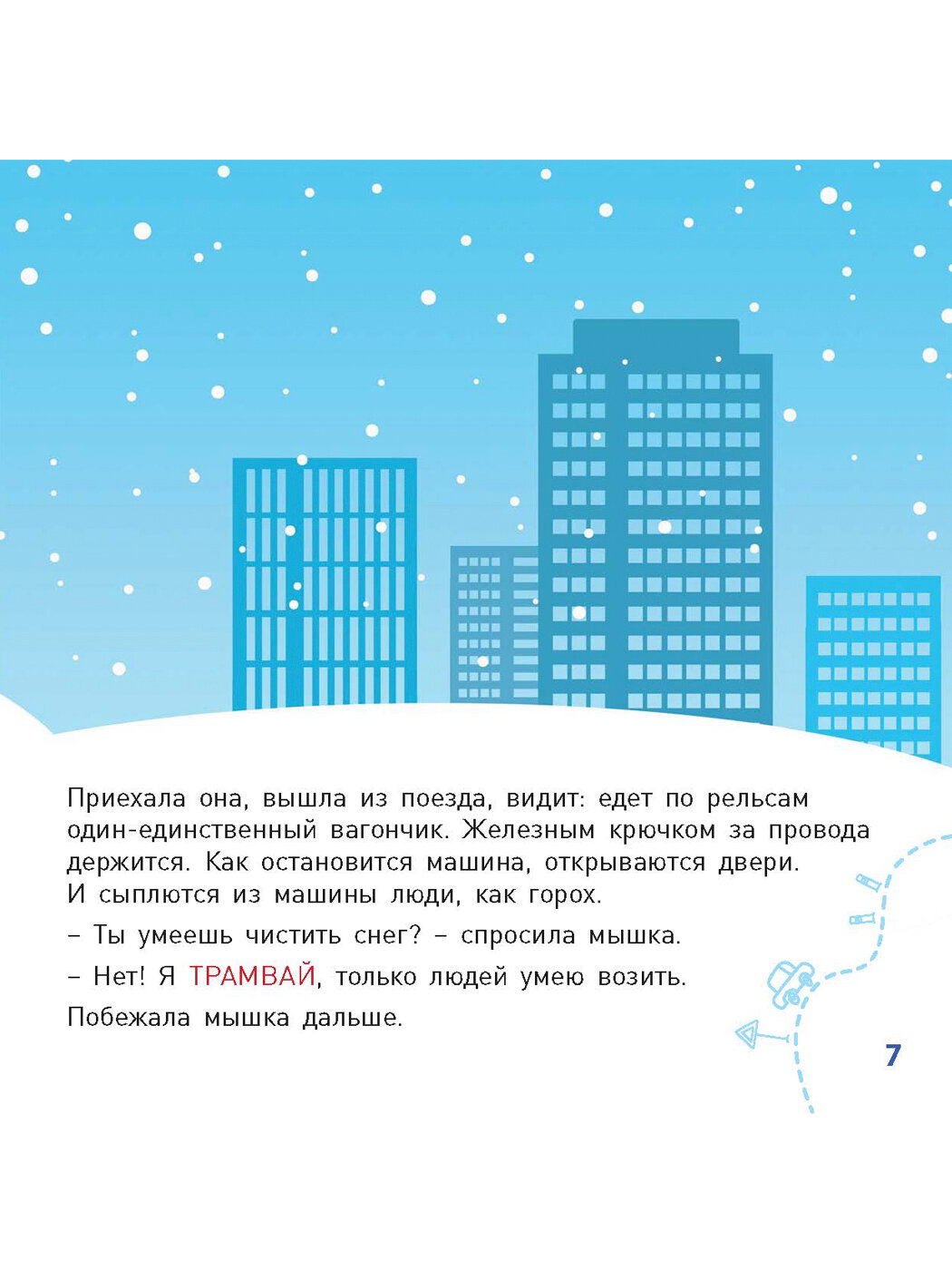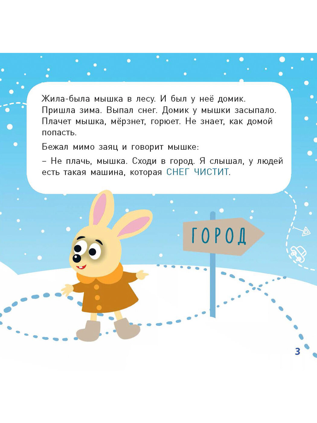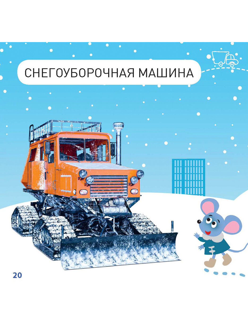 Мышкин домик в лесу зимой засыпало снегом. И отправилась мышка в город – искать, кто ей поможет домик откопать… Эта познавательная книжка обязательно понравится малышам, ведь здесь они найдут крупные, яркие фотографии самых разных машин, забавную историю о приключениях мышки в городе и вопросы по картинкам для развития памяти и внимания.