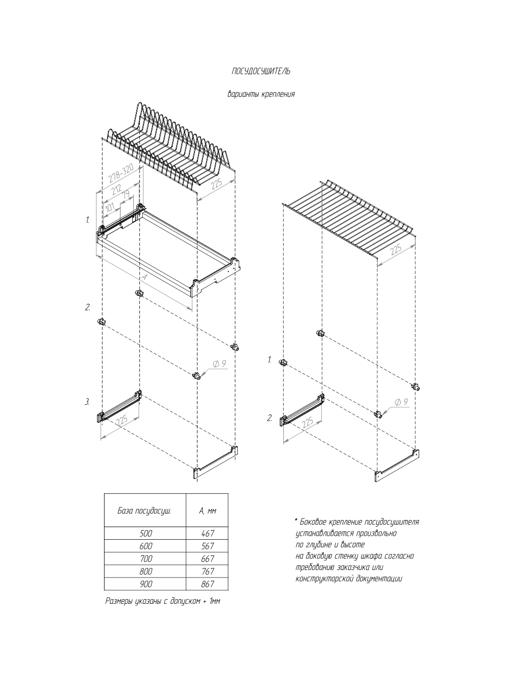Посудосушитель предназначен для установки в мебельный модуль со стенками, изготовленными из ДСП толщиной 16 мм.