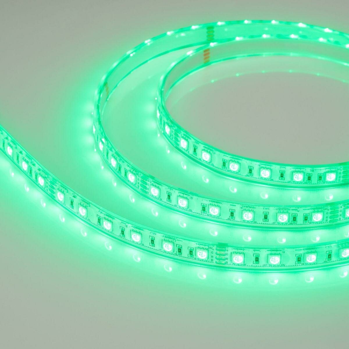 Светодиодная лента RTW-PU-B60, герметичная IP68 (PU-сплошной полиуретан), подходит для использования под водой на глубине до 2м. Светодиоды 5060, 60 шт/м (300 шт на 5 м), белая плата, ширина 12.5 мм. Цвет RGB, угол 120°. Питание 24V, мощность 14.4 Вт/м (72 Вт на 5 м). Размеры 5000x12.5x5.6 мм. Мин. отрезок 100 мм, 6 светодиодов. Цена за 1 м. Лента крепится с помощью скоб, скобы идут в комплекте (5шт), 3M скотч отсутствует.