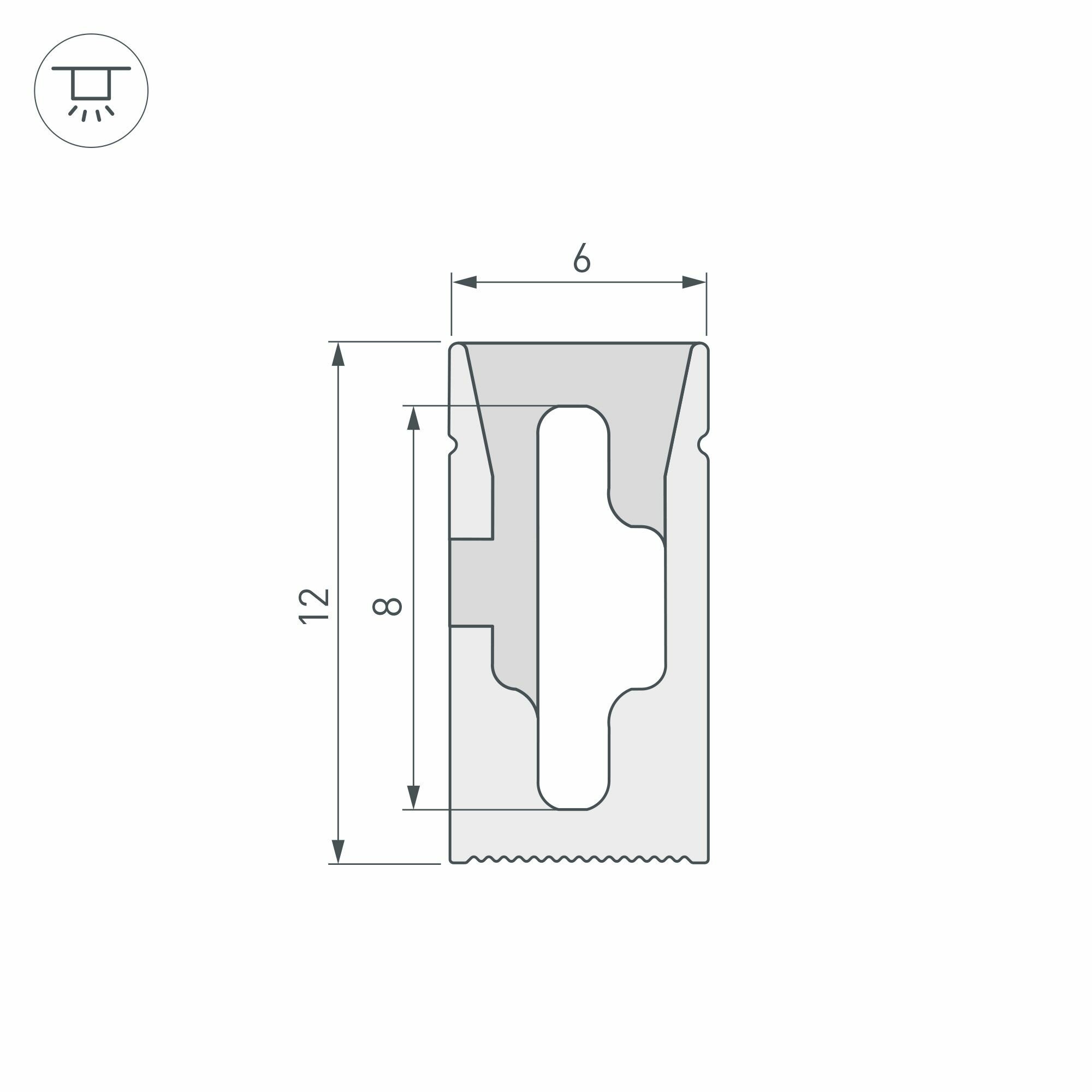 Цельнолитой силиконовый гибкий профиль, верхняя часть - белая матовая, остальные стороны - черные матовые. Габаритные размеры 5000×16×16 мм. Гнется в плоскости. Для установки во влажных помещениях необходима герметизация при помощи двухкомпонентного эпоксидного герметика. Класс пылевлагозащиты – IP65 (при соблюдении технологии герметизации). Для лент шириной 10 мм, высотой до 2,85 мм и мощностью до 10 Вт/м. Угол излучения 110°. Поставляется в катушках по 5 м. Цена за 1 м.