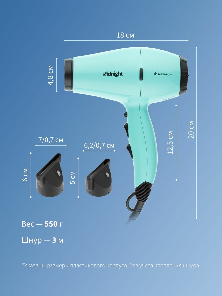 Фен Dewal MIDNIGHT – удобный, лёгкий и компактный профессиональный фен.