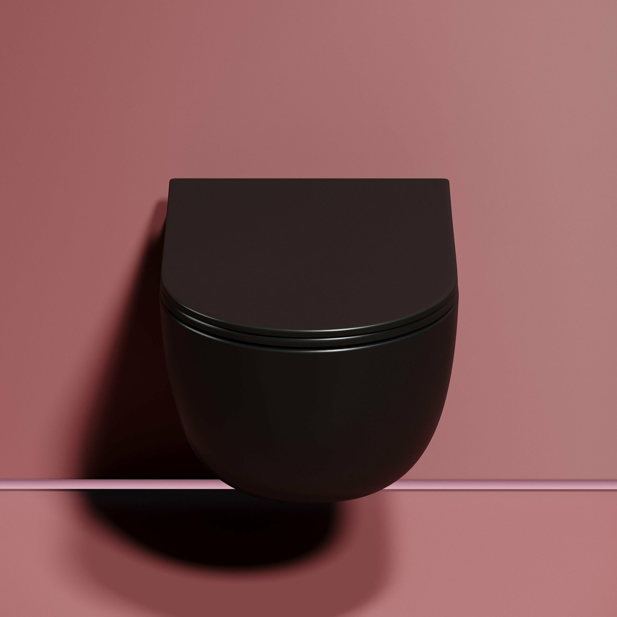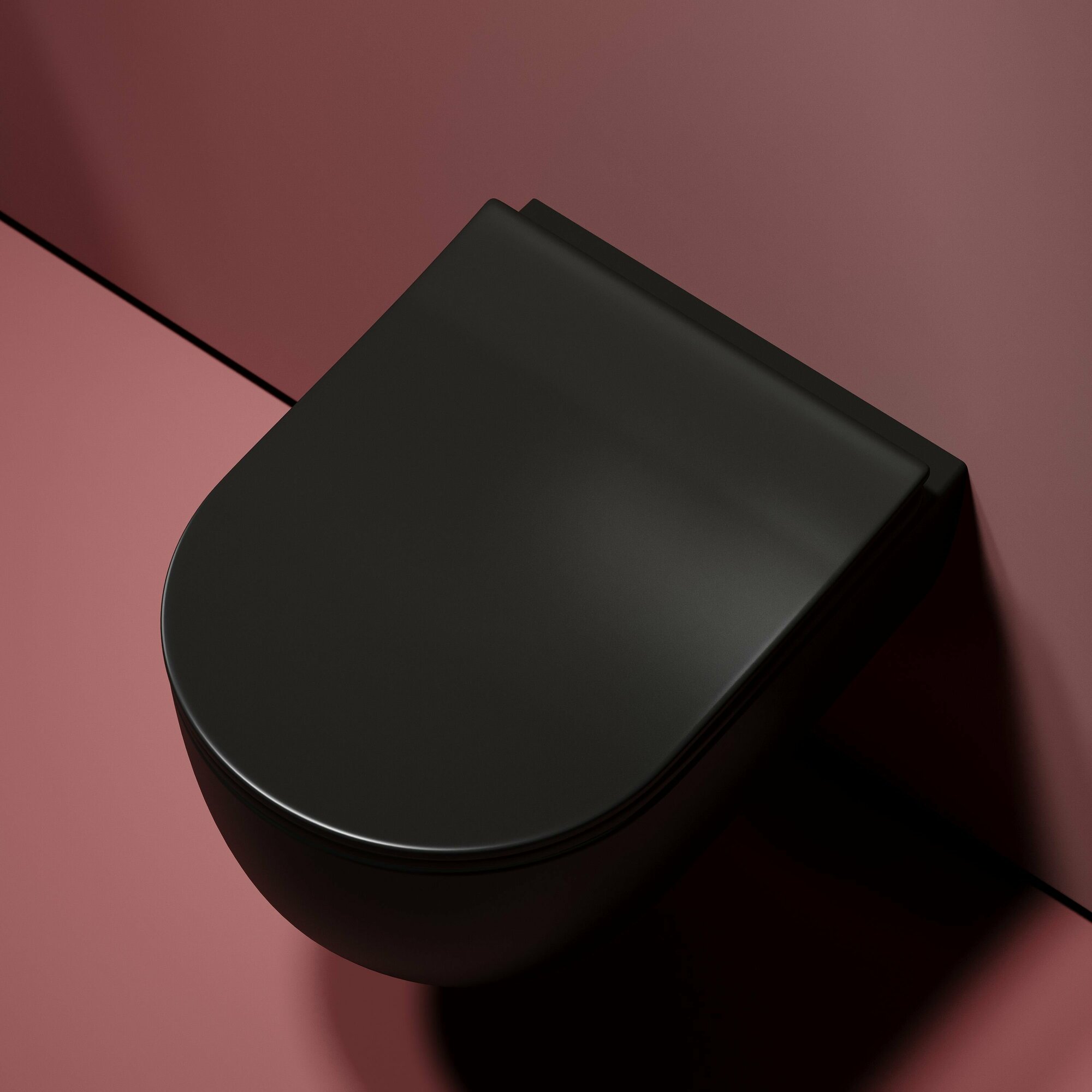 Подвесной унитаз Modena Rimless (цвет чёрный матовый), глубокий смыв, с крепежом для полностью скрытого монтажа, ультратонким сидением и крышкой с функцией плавного закрытия, дюропласт
