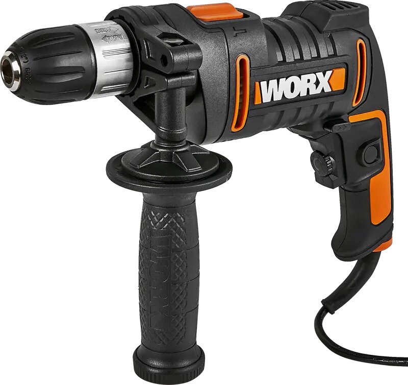**Дрель-шуруповерт сетевая ударная Worx WT323 WX** — модель, которая подойдет как для домашнего использования, так и для профессионального использования в ремонтно-строительной области. Характеризуется высокой мощностью. Подходит для сверления отверстий разного диаметре в металле, дереве и некоторых других материалах. Функционалом предусмотрено две скорости. Это позволяет настроить дрель под конкретную задачу и добиться качественного результата. Дрель функционирует от стандартной сети. К основной ручке прилагается дополнительная, что значительно улучшает контроль над электроинструментом. Для работы при плохой освещенности устройство оснащено встроенной подсветкой.