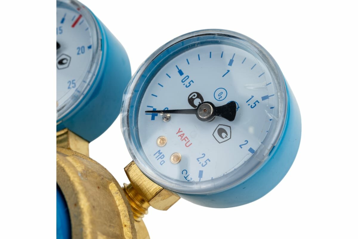 - Редуктор комплектуется двумя манометрами, контролирующими давление на входе и в камере рабочего давления