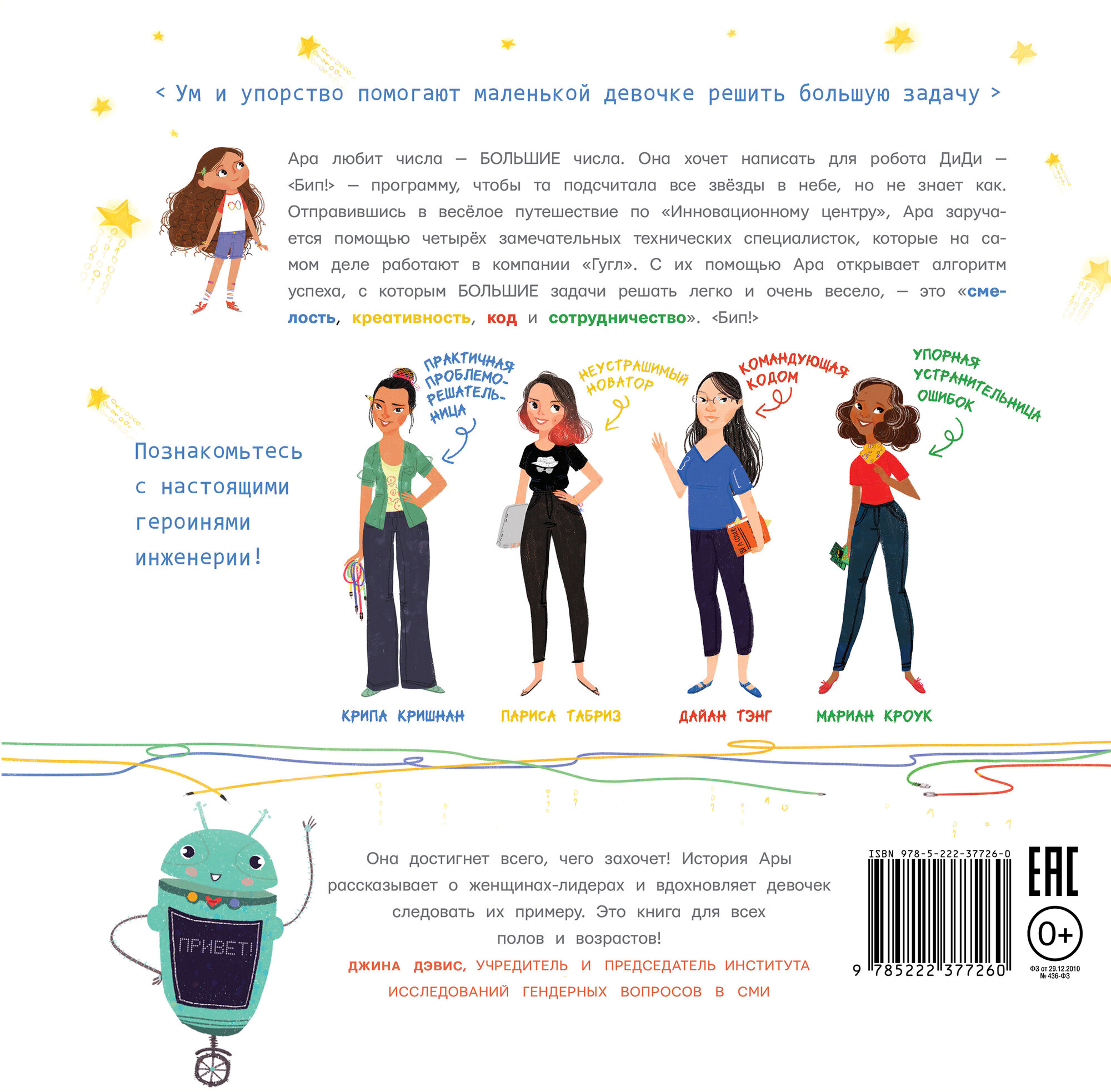 Вместе со своим роботом ДиДи она отправляется в весёлое путешествие по "Инновационному центру" и с помощью четырёх замечательных технических специалисток, которые на самом деле работают в компании "Гугл", узнаёт алгоритм успеха, с которым большие задачи решать легко и очень весело - это "смелость, креативность, код и сотрудничество".