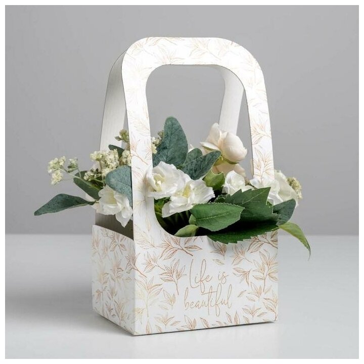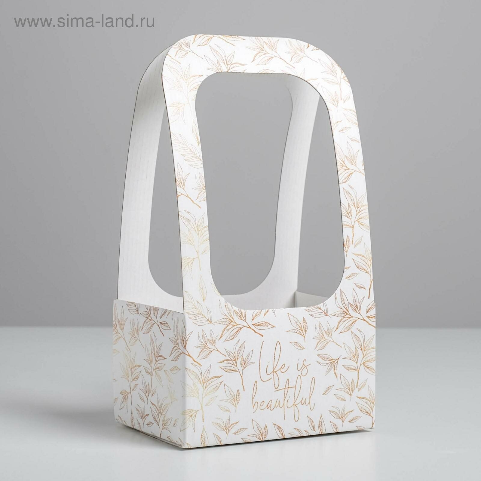 Коробка-переноска для цветов Дарите Счастье Веточки 17 x 12 x 32 см