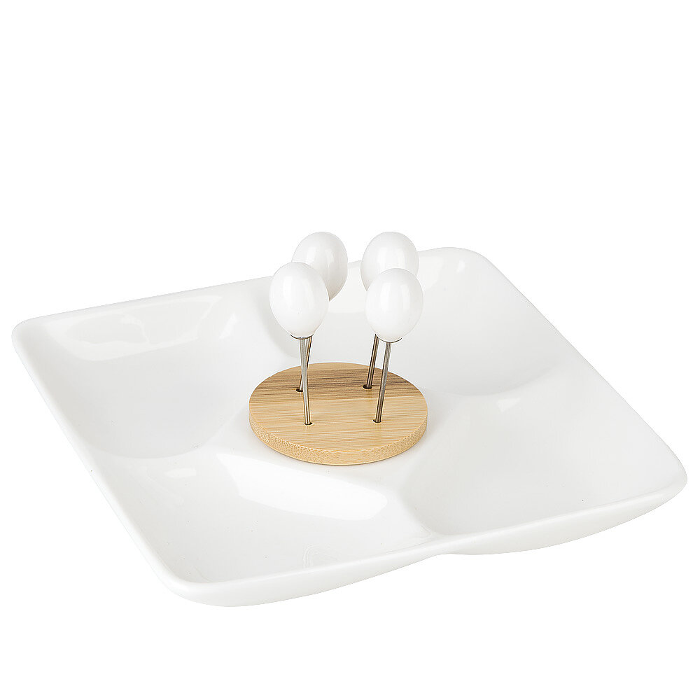 Менажница Nouvelle Home 4-х секционная со шпажками Naturel 20х20х9 см