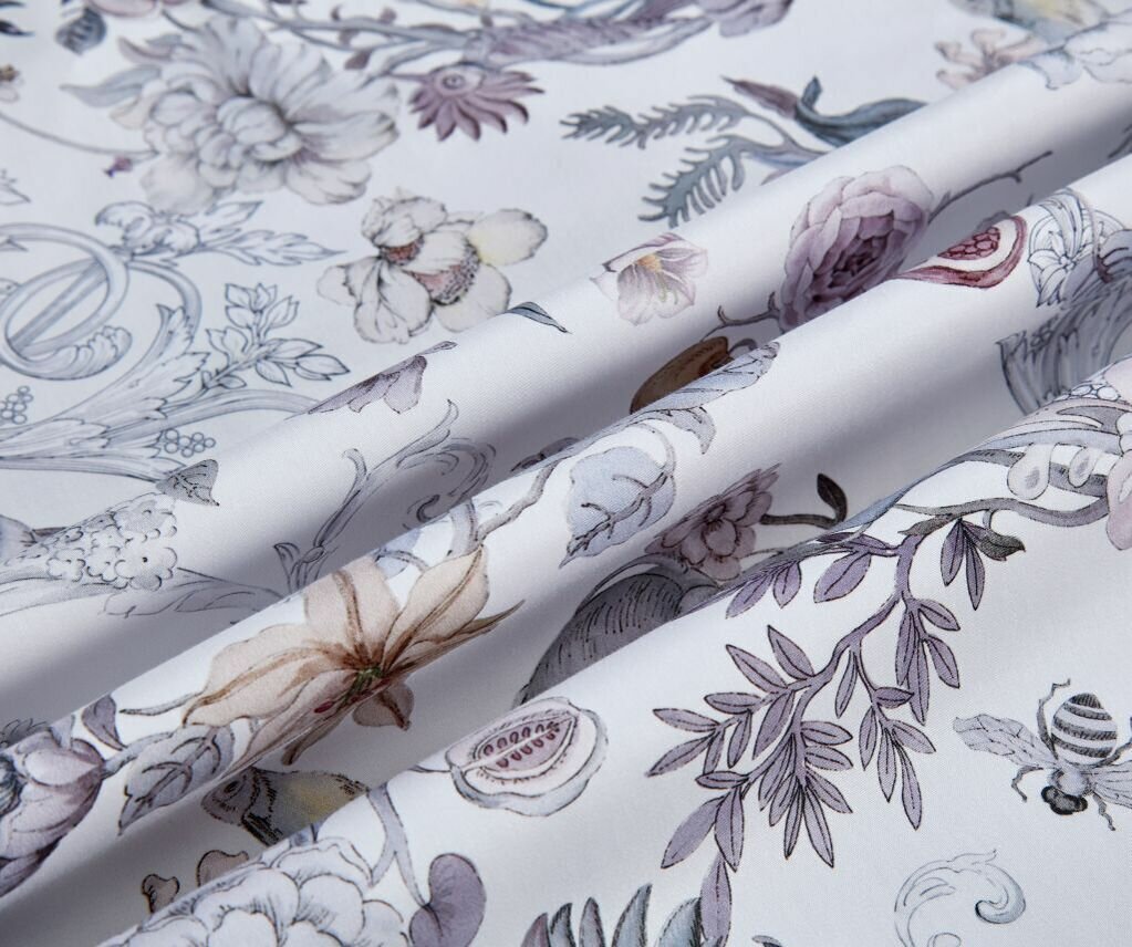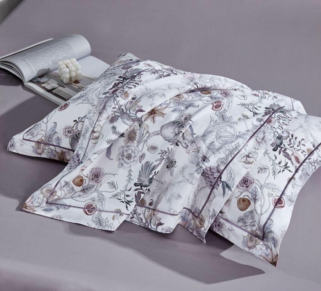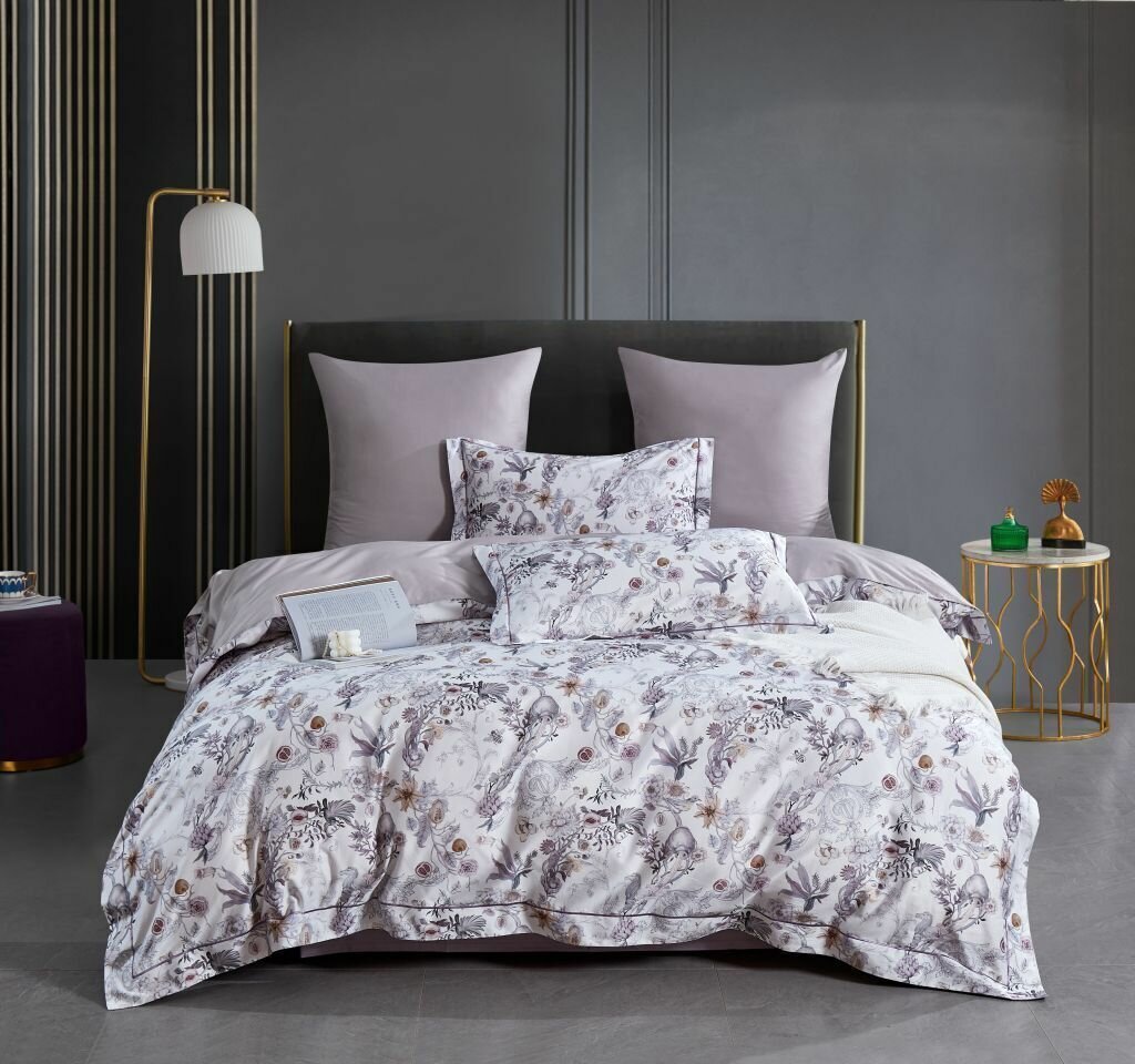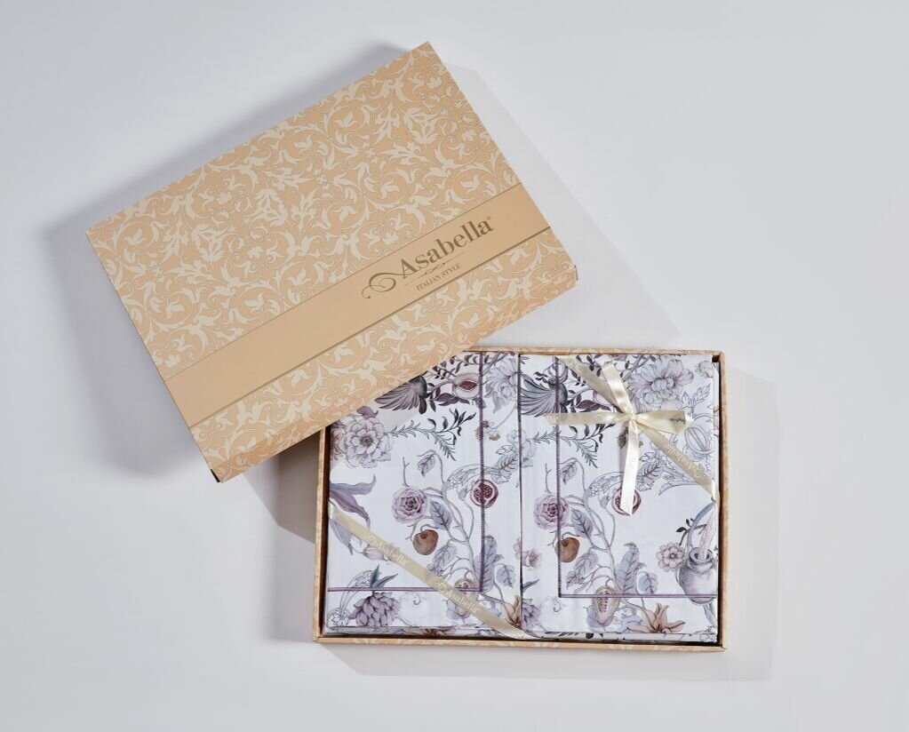 Комплект постельного белья евро Anabella Asabella узор на белом простыня светло-серо-сиреневая (2144-6) (размер: евростандарт)
